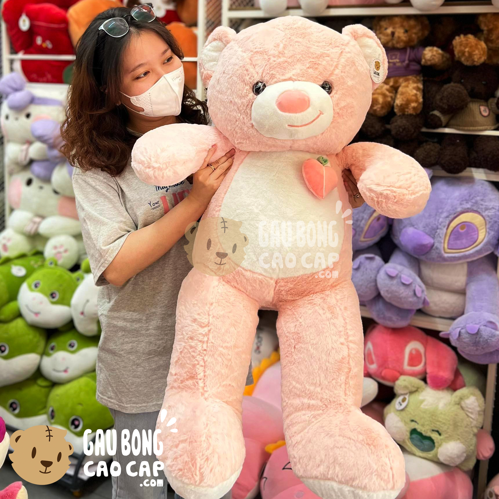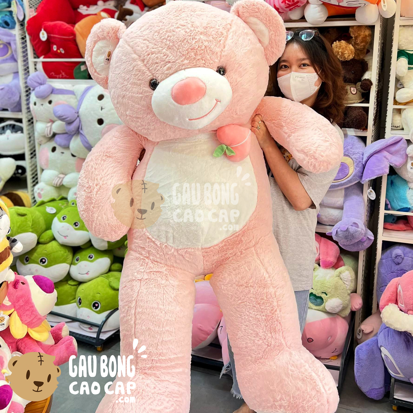 Gấu Teddy Smile ngực đính trái Đào được thiết kế với 4 kích thước Gấu Bông lớn nhỏ khác nhau: 60cm, 75cm, 95cm, 1m4
