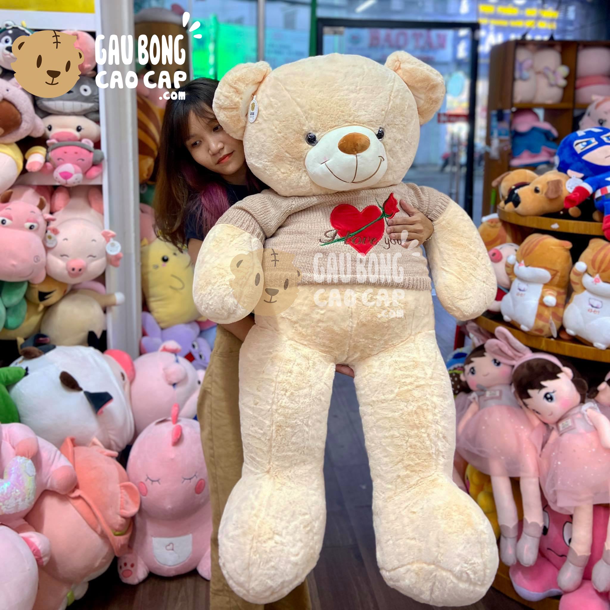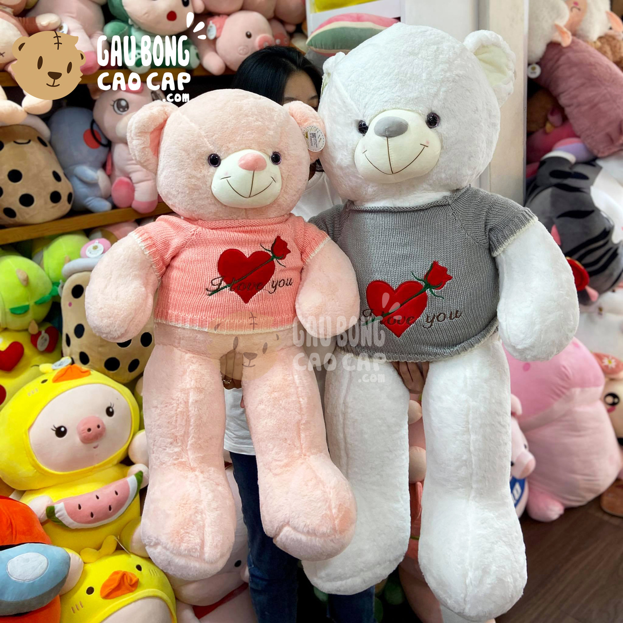 Gấu Teddy Smooth áo len thêu Tim Hoa Hồng I love you được thiết kế với 3 kích thước Gấu Bông lớn nhỏ khác nhau: 80cm, 1m, 1m3