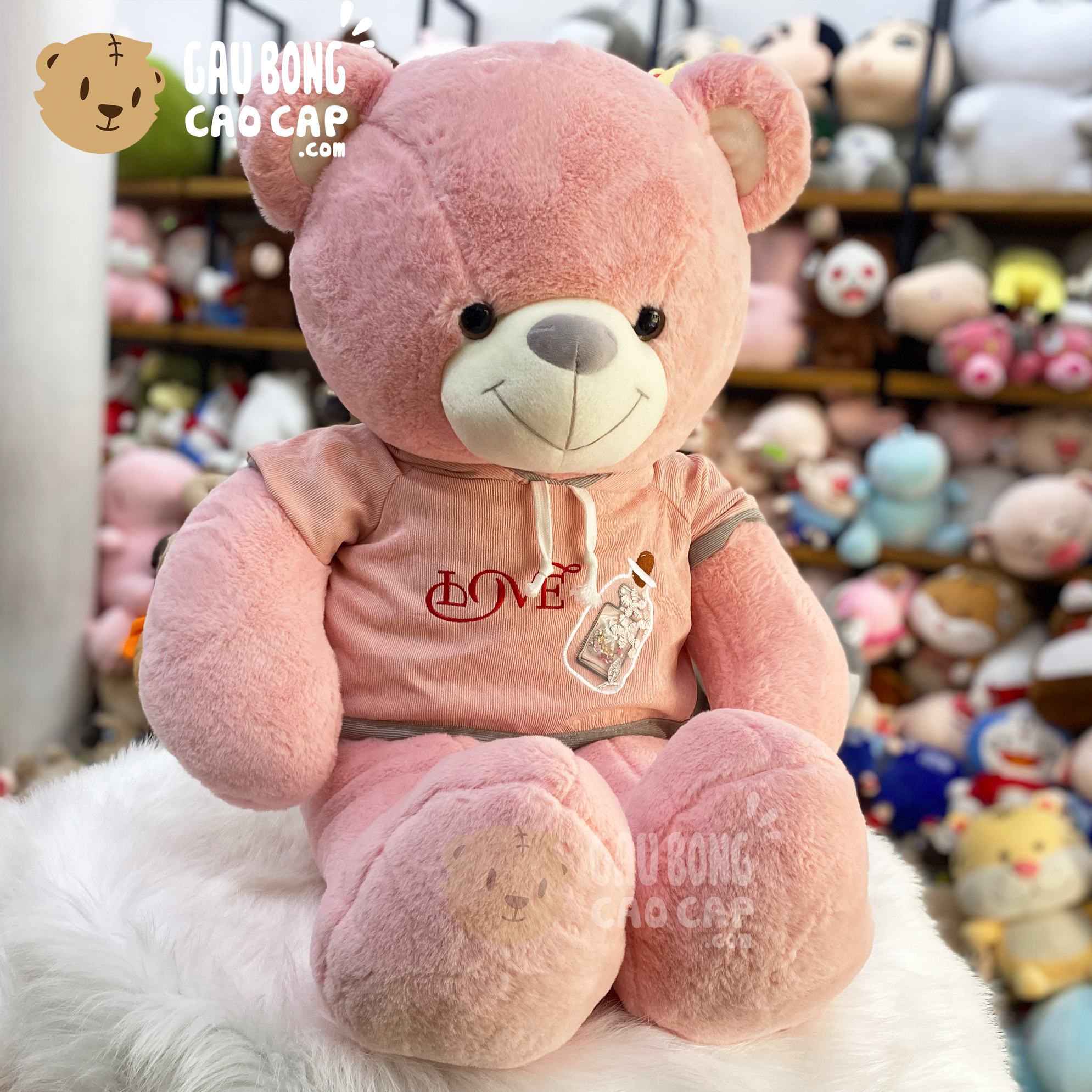 Gấu Teddy Smooth mặc áo Hoodie Love được thiết kế với 2 kích thước Gấu Bông lớn nhỏ khác nhau: 1m, 90cm