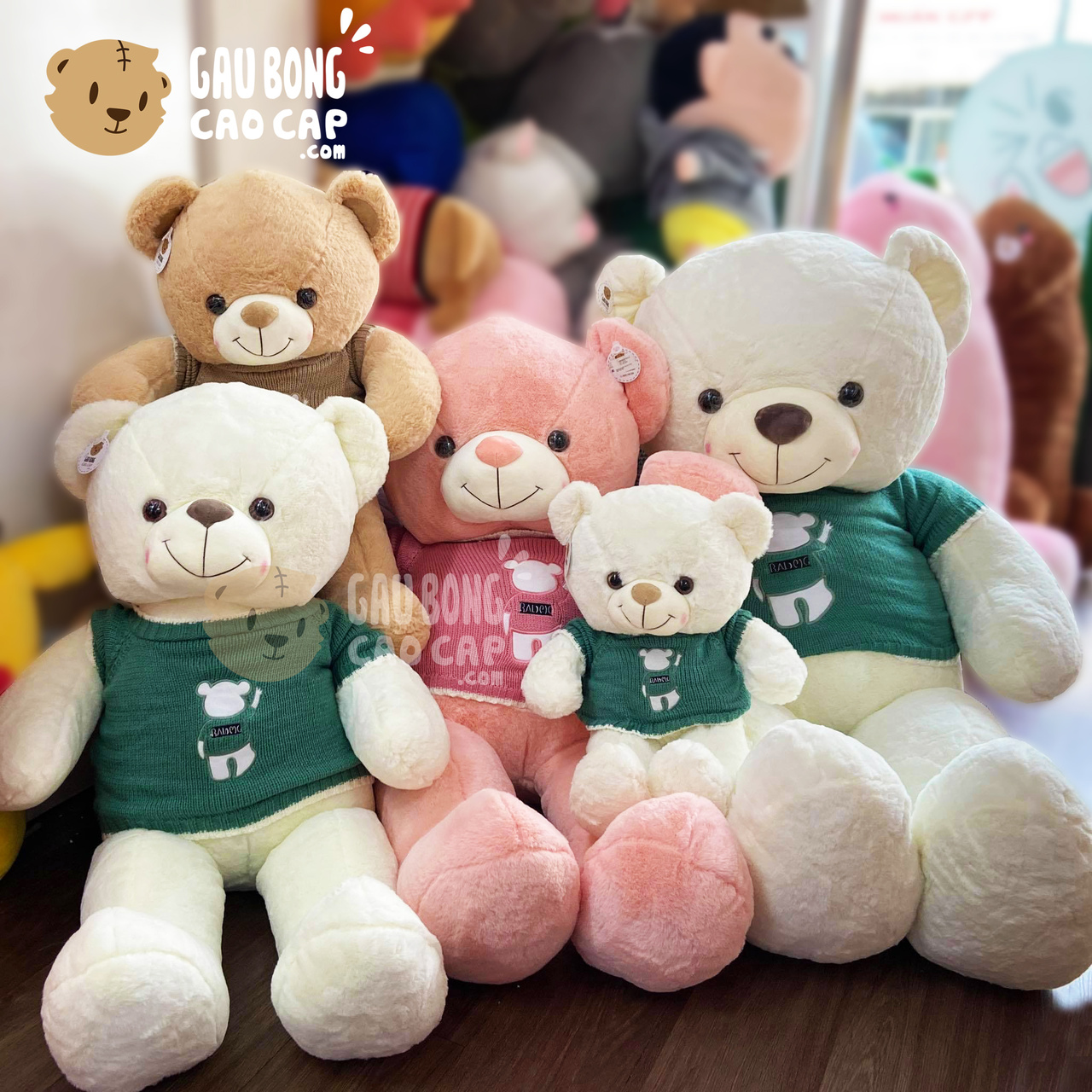 Gấu Teddy Smooth mặc áo len thêu hình Gấu được thiết kế với 5 kích thước Gấu Bông lớn nhỏ khác nhau: 55cm, 80cm, 95cm, 1m1, 1m4