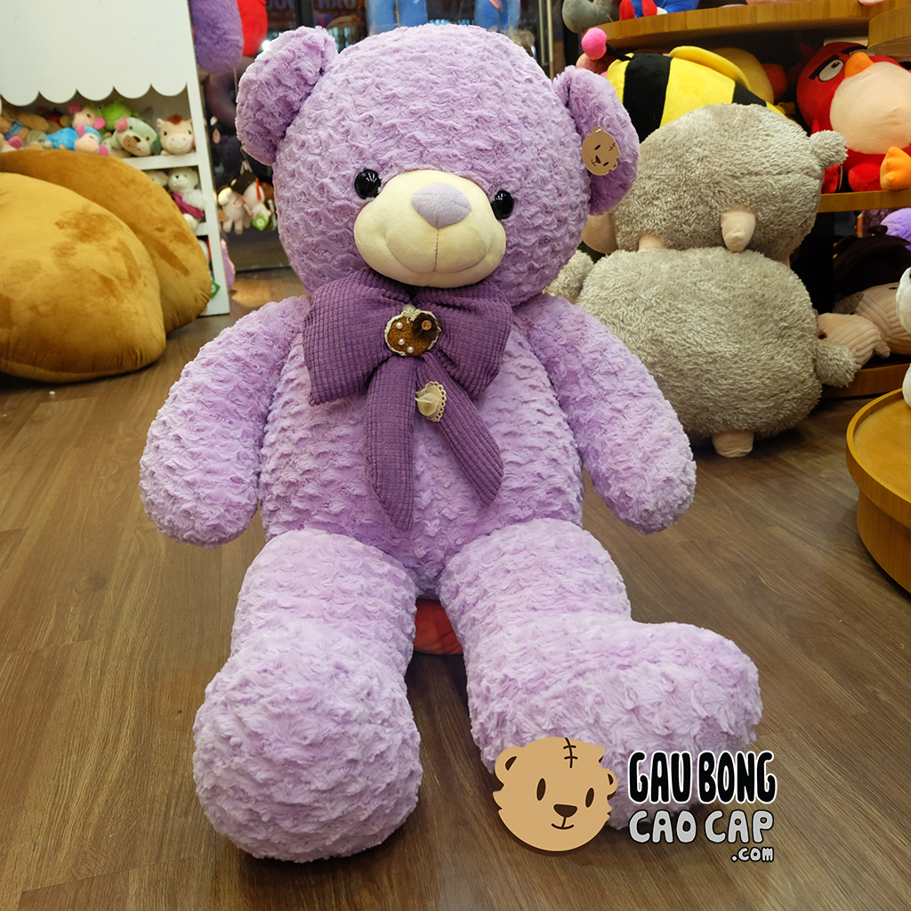 Gấu Teddy tím đeo nơ được thiết kế với 4 kích thước Gấu Bông lớn nhỏ khác nhau: 70cm, 80cm, 1m1, 1m3