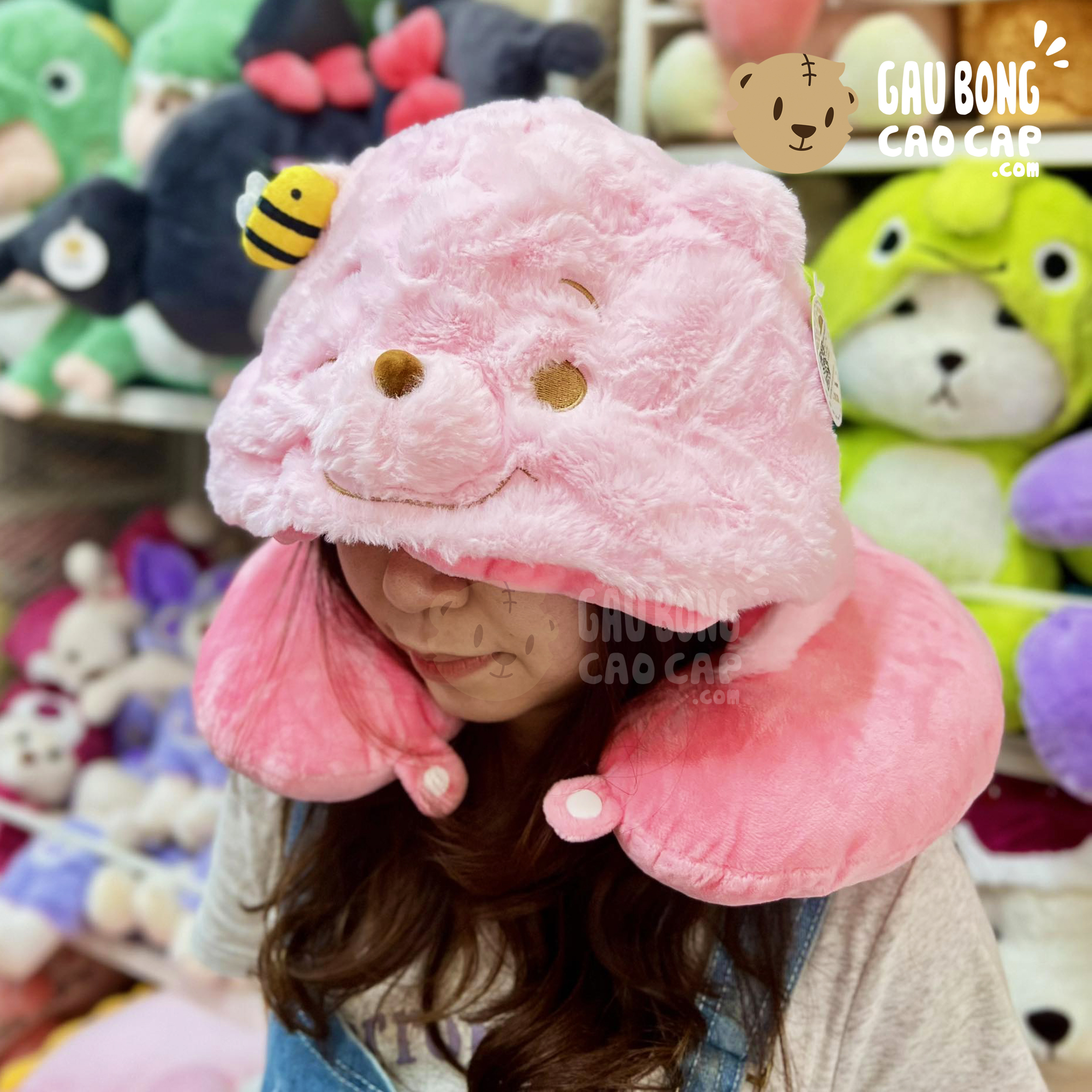 Gối kê cổ Chữ U có nón - Gấu Pooh Hồng đang nằm trong danh sách những sản phẩm Gấu Bông Gối Chữ U BÁN CHẠY và đang được các bạn trẻ YÊU THÍCH NHẤT.