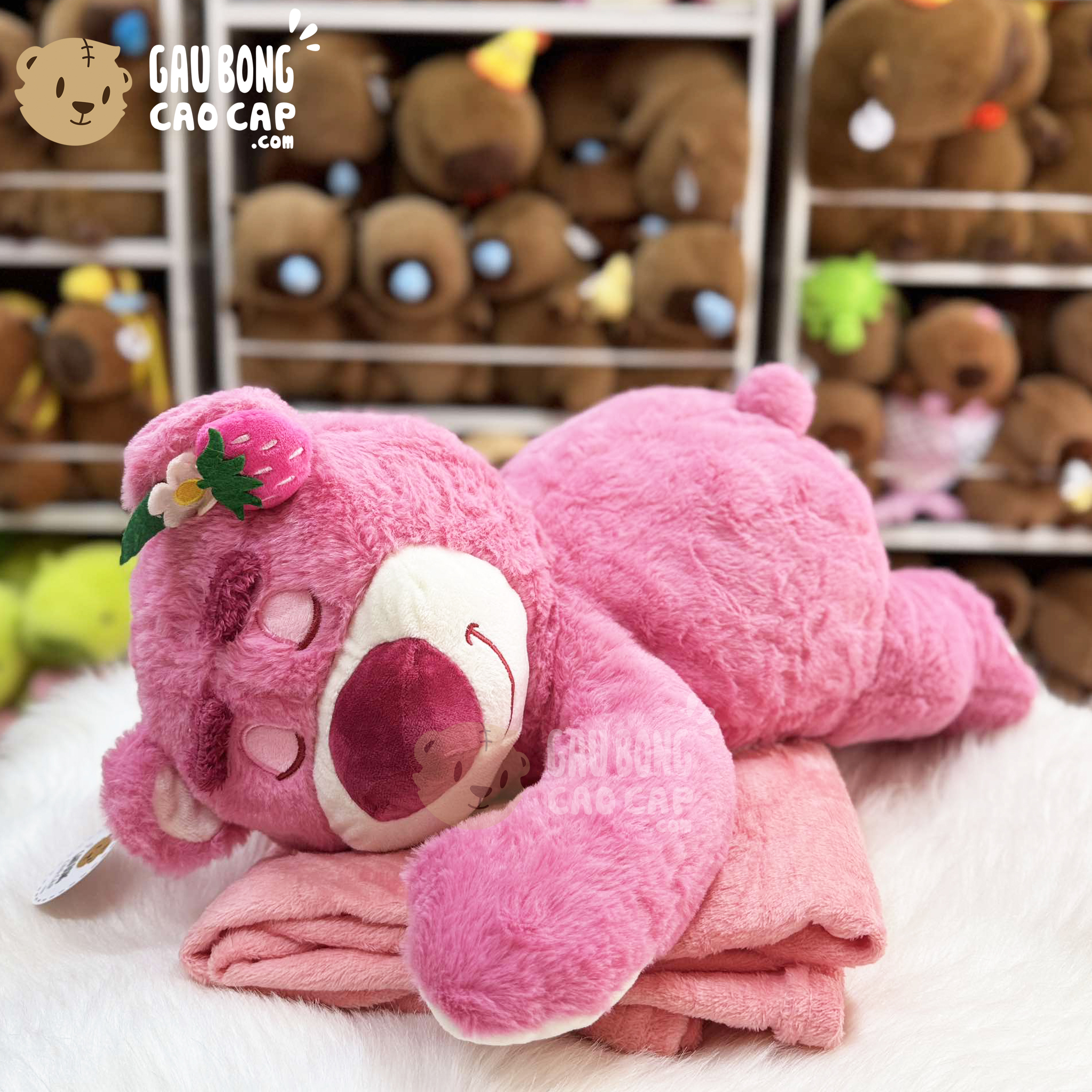 Gối mền 2in1 Gấu Bông Lotso Dâu nằm nhắm mắt - Hàng Nhập đang nằm trong danh sách những sản phẩm Gấu Bông Lotso BÁN CHẠY và đang được các bạn trẻ YÊU THÍCH NHẤT.