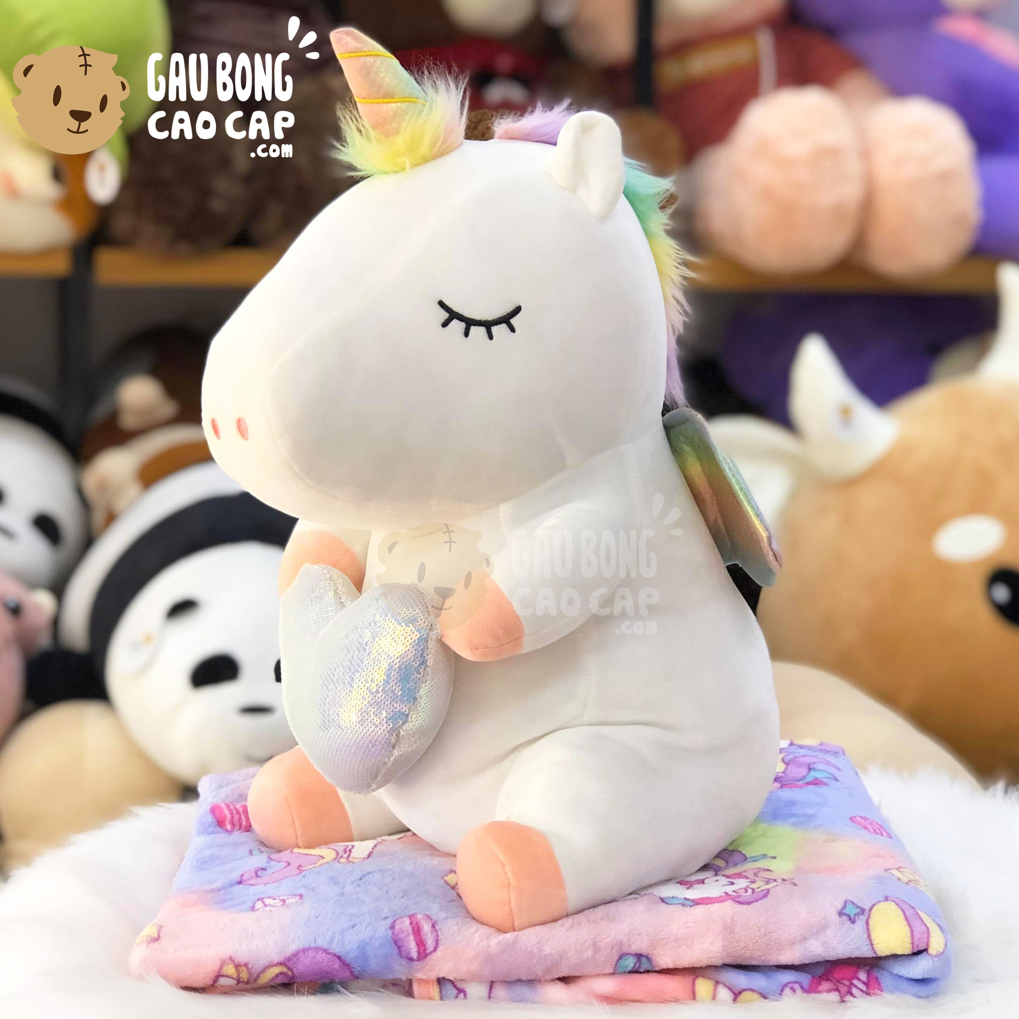 Trang Chủ / Gấu Bông Cao Cấp / Gối ôm / Gối Mền 2in1 / Gối mền 2in1 Unicorn ôm tim