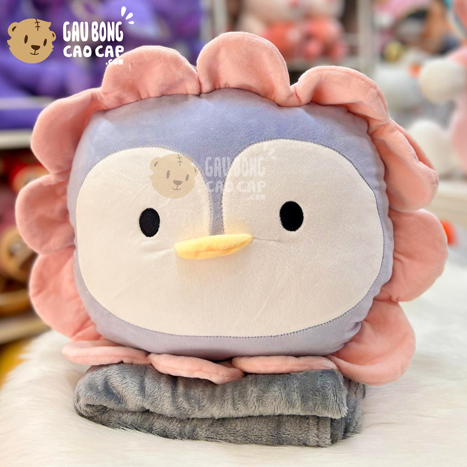 Trang Chủ / Gấu Bông Cao Cấp / Gối ôm / Gối Mền 2in1 / Gối mền Gấu Bông Chim Cánh Cụt cosplay Hoa Hướng Dương