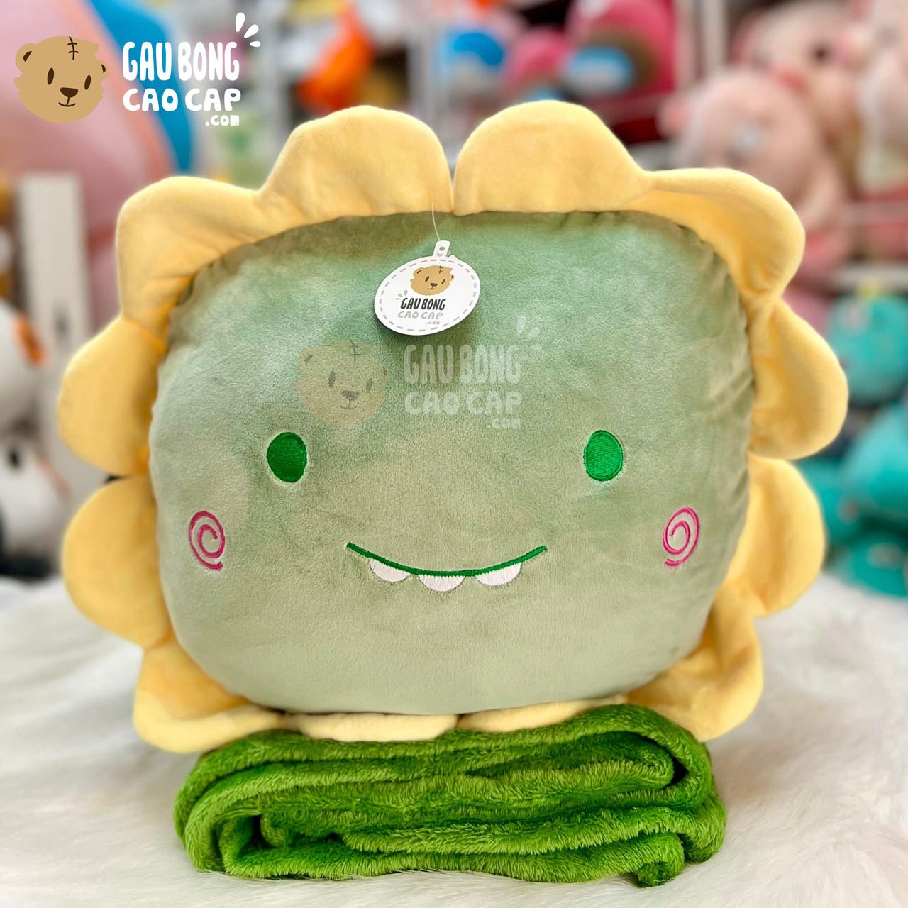 Trang Chủ / Gấu Bông Cao Cấp / Gối ôm / Gối Mền 2in1 / Gối mền Gấu Bông Khủng Long Xanh cosplay Hoa Hướng Dương