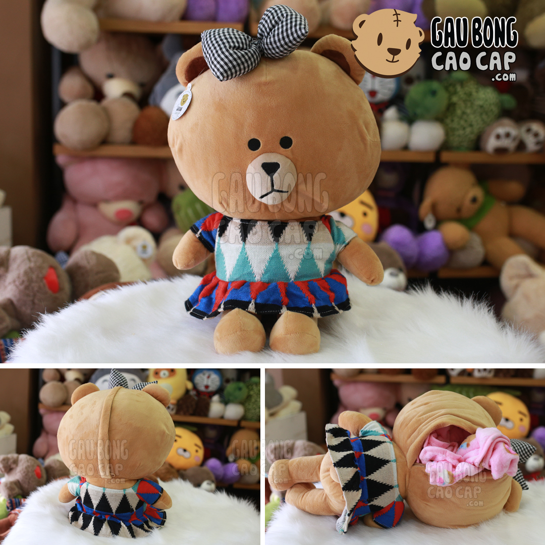 Gối mền Gấu Brown nữ mặc váy được thiết kế với 1 kích thước Gấu Bông lớn nhỏ khác nhau: 65cm