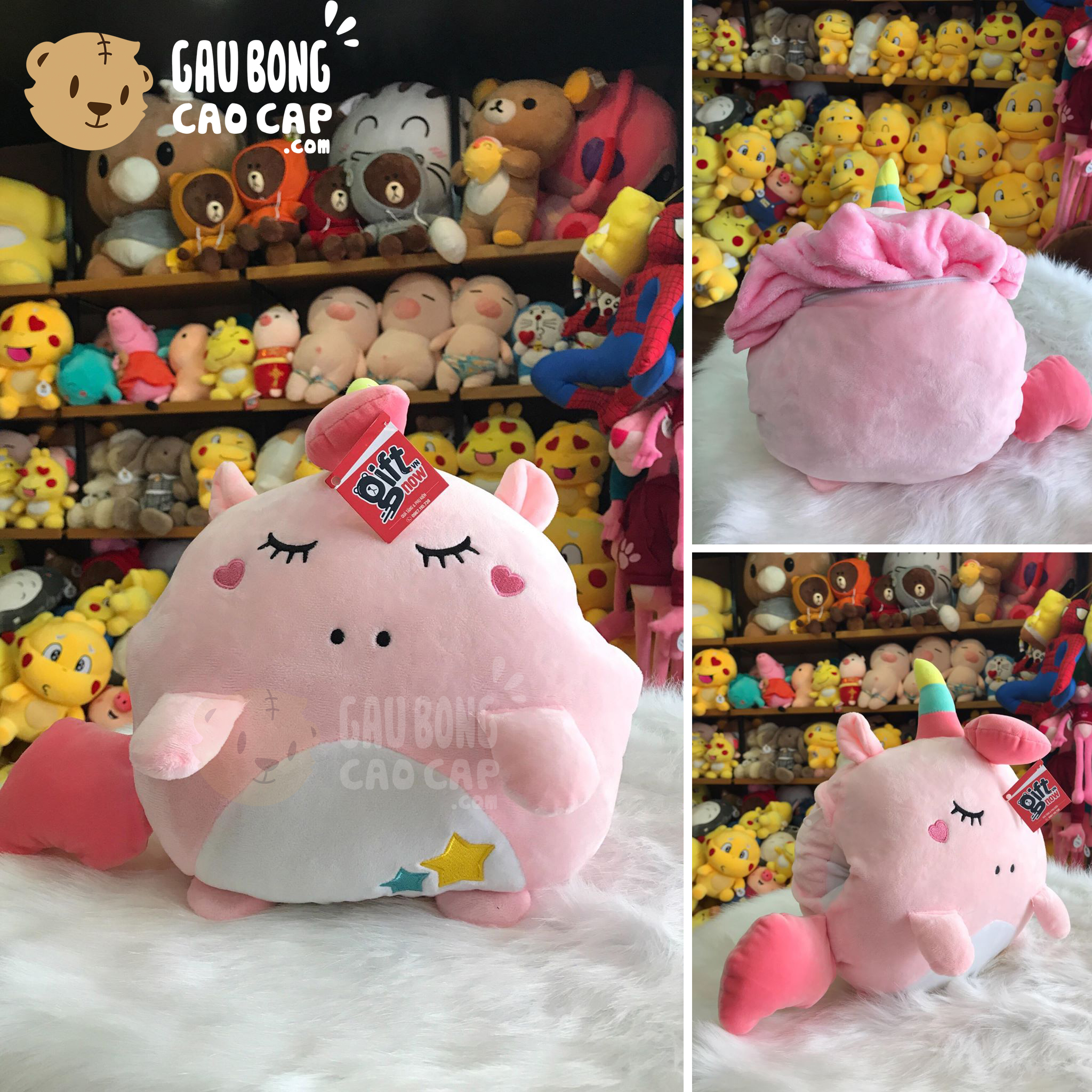Trang Chủ / Gấu Bông Cao Cấp / Gối ôm / Gối Mền 2in1 / Gối mền Unicorn tròn má Tim