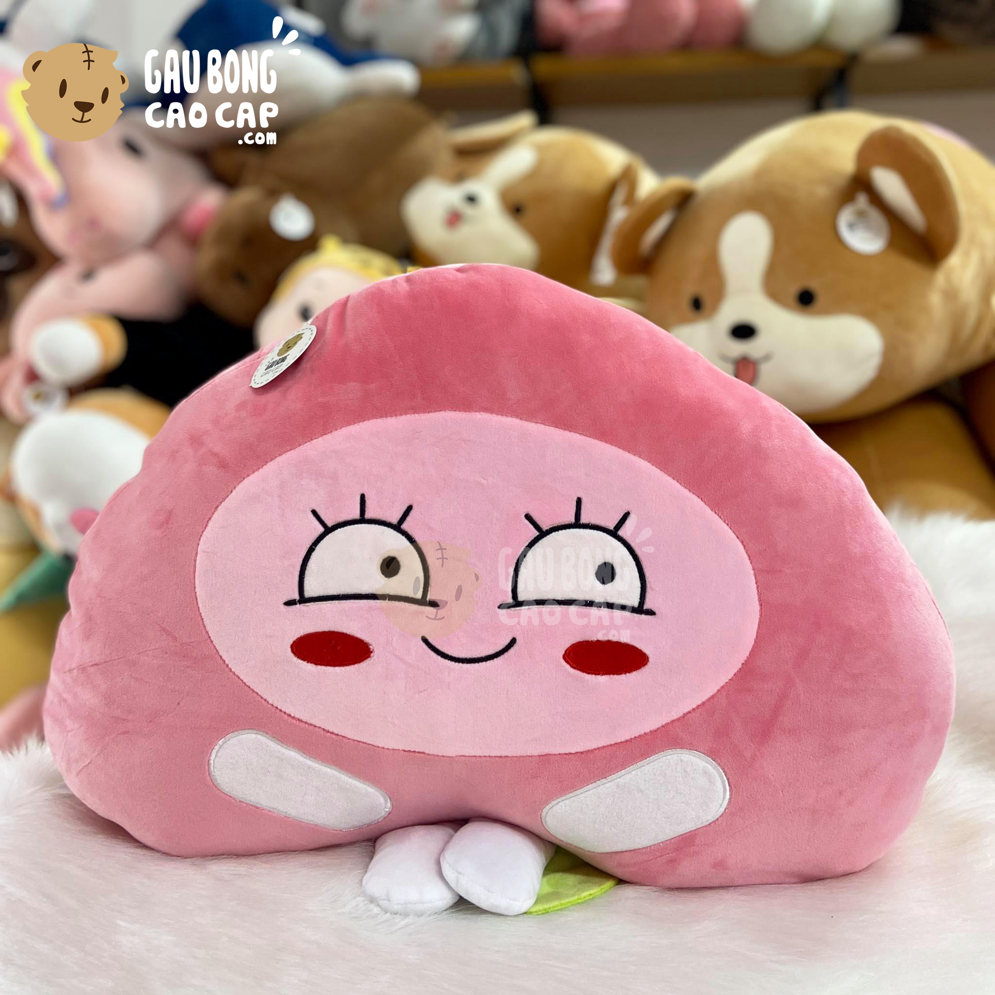 Gối ôm trái Đào Hồng mặt biểu cảm đang nằm trong danh sách những sản phẩm Gấu Bông Trài Đào Bông BÁN CHẠY và đang được các bạn trẻ YÊU THÍCH NHẤT.