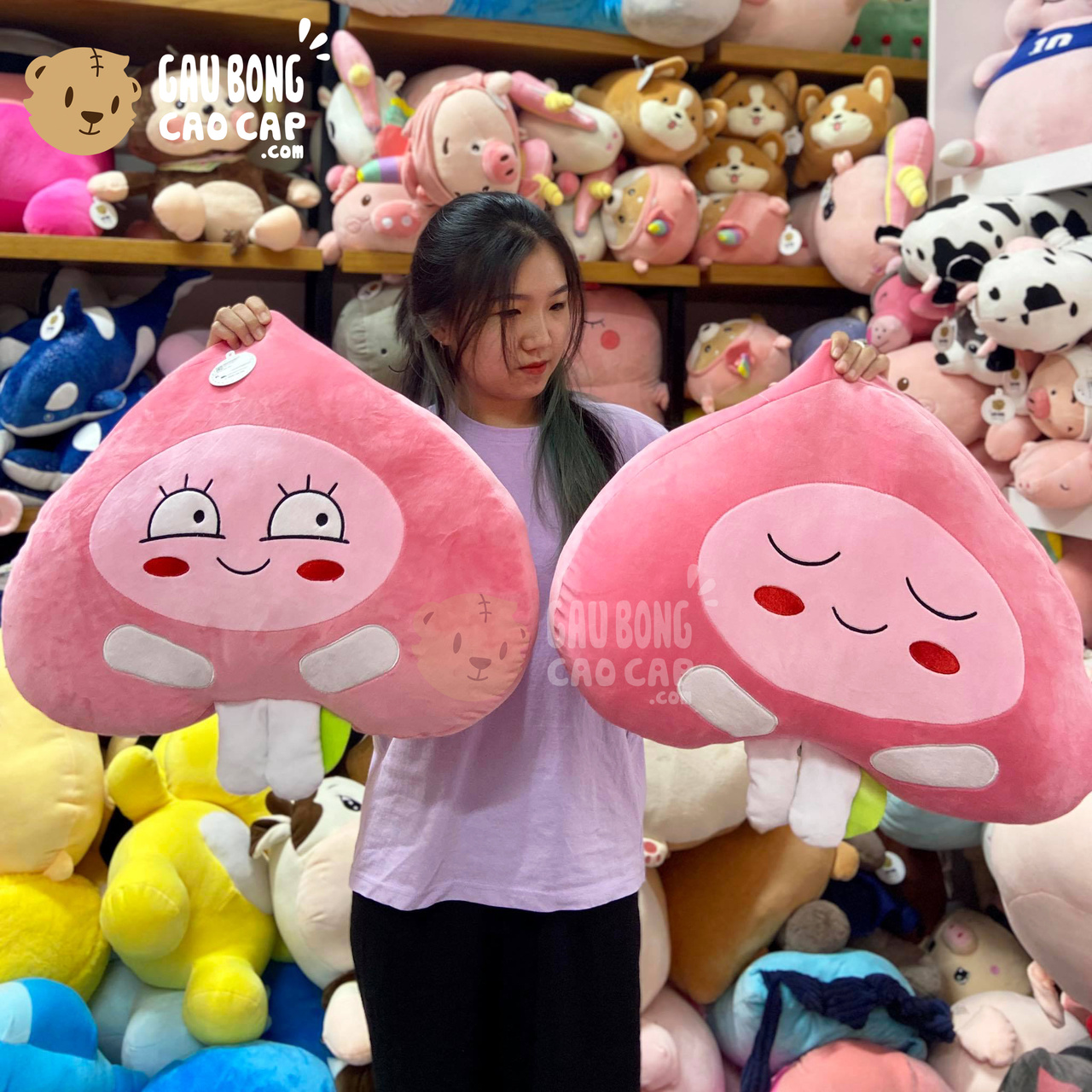 Gối ôm trái Đào Hồng mặt biểu cảm được thiết kế với 1 kích thước Gấu Bông lớn nhỏ khác nhau: 55cm