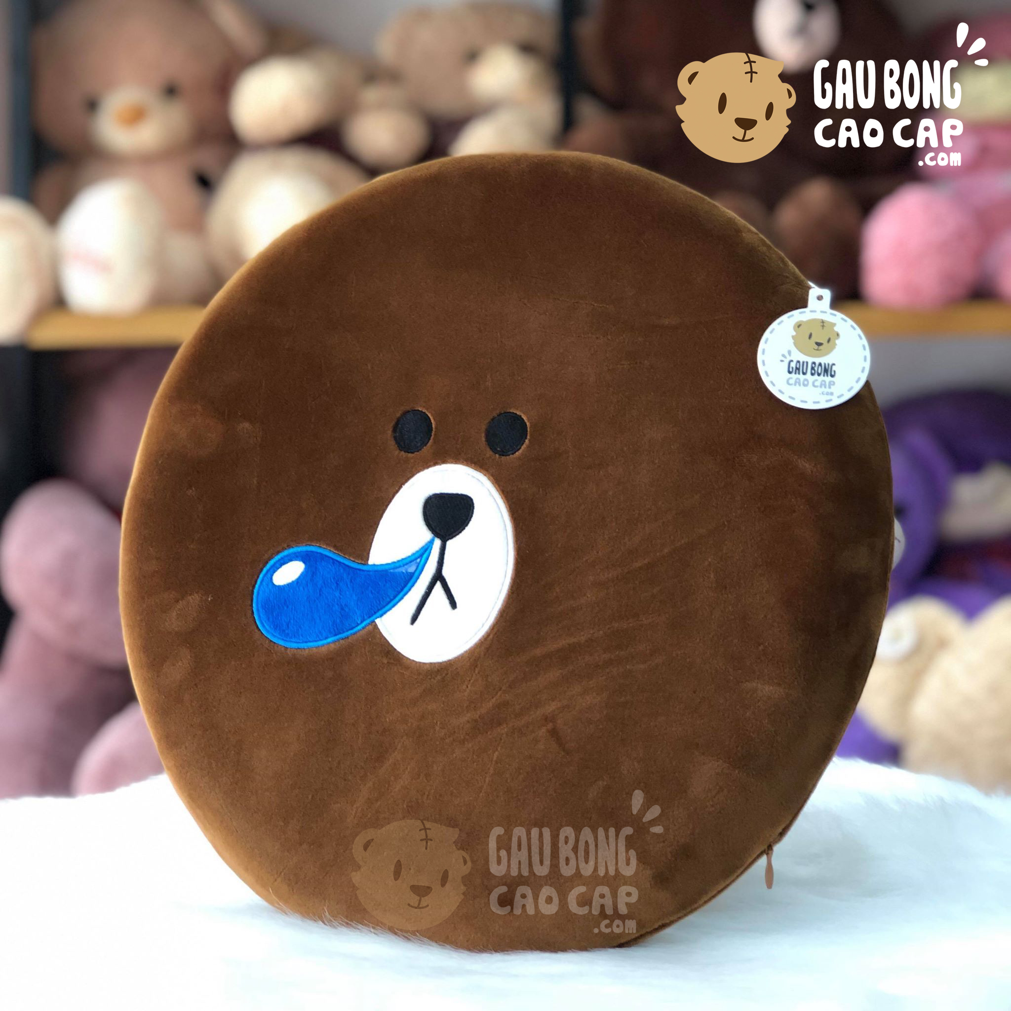 Trang Chủ / Gấu Bông Cao Cấp / Gối ôm / Gối tựa lưng / Gối tự lưng/lót mông Gấu Brown hình tròn