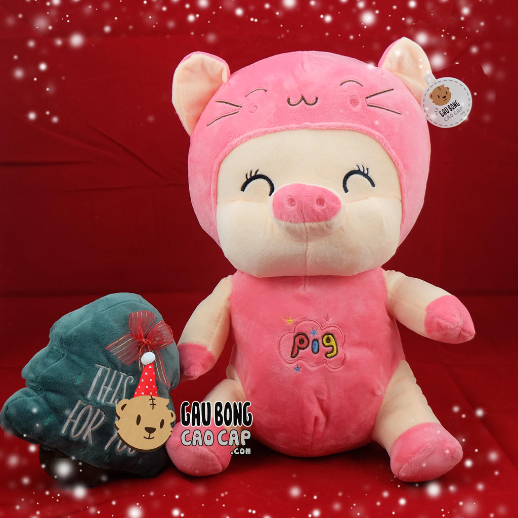 Heo bông Cospay đội lốt mèo được thiết kế với 3 kích thước Gấu Bông lớn nhỏ khác nhau: 70cm, 50cm, 35cm