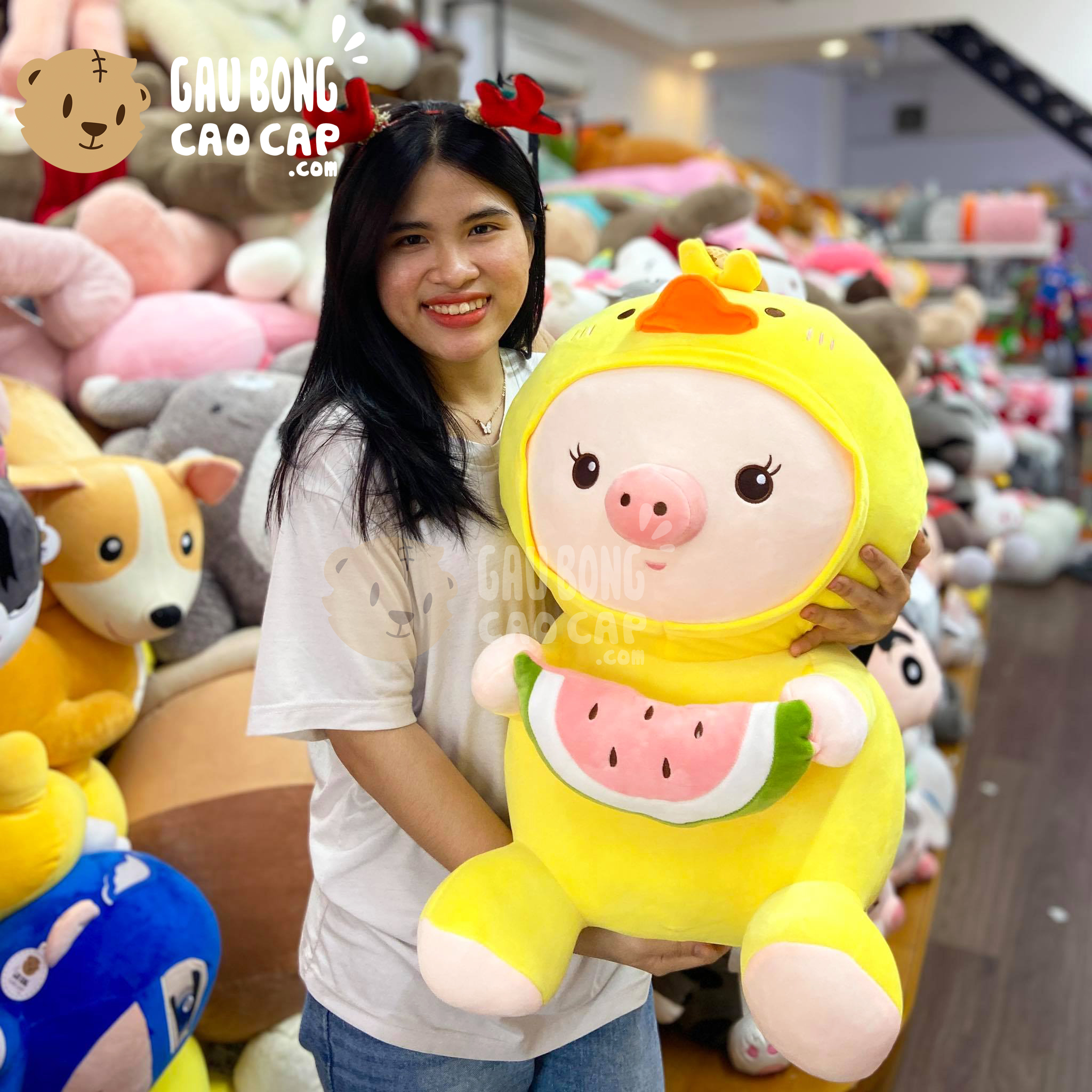 Heo Bông cosplay thú bông ôm trái cây đang nằm trong danh sách những sản phẩm Gấu Bông Heo Bông BÁN CHẠY và đang được các bạn trẻ YÊU THÍCH NHẤT.