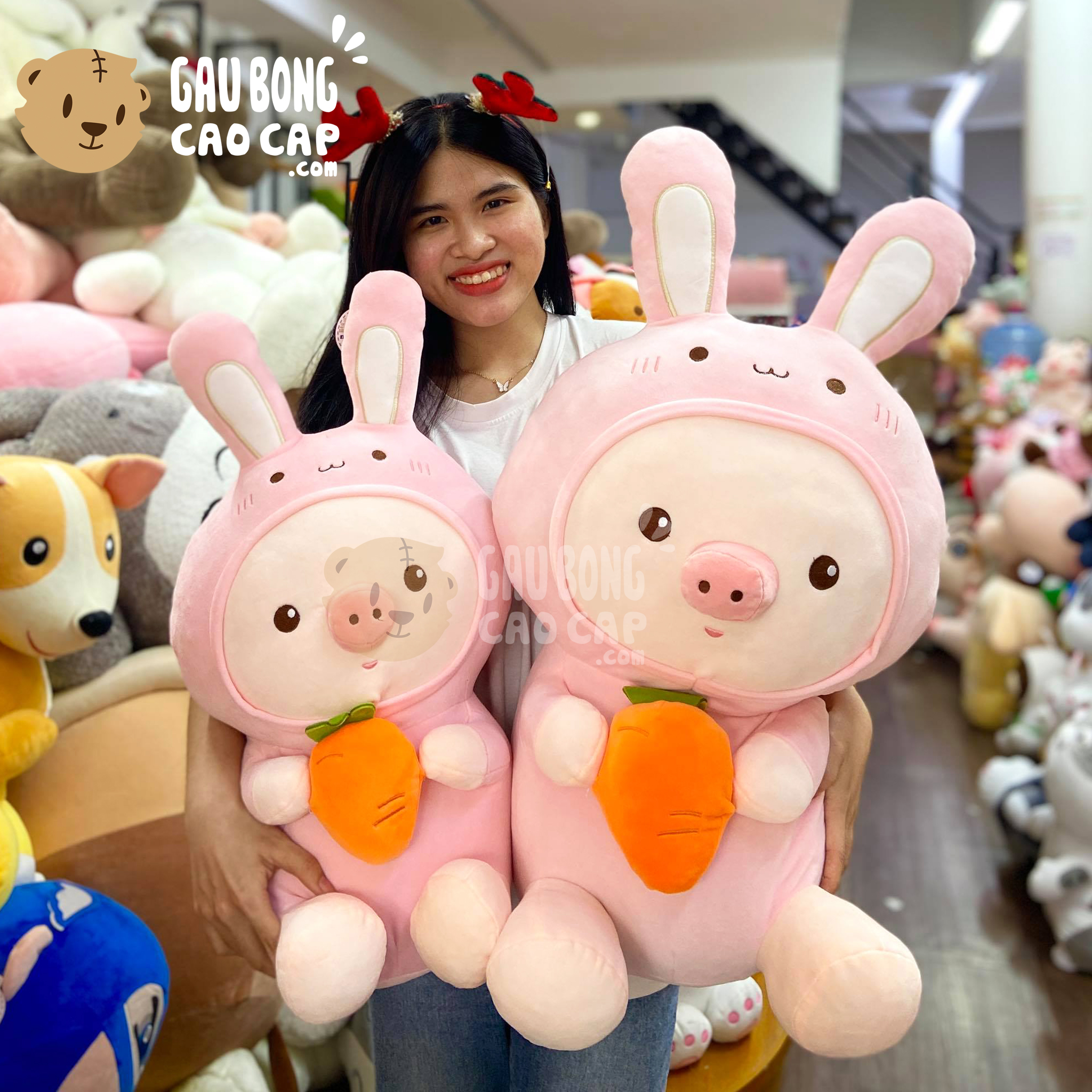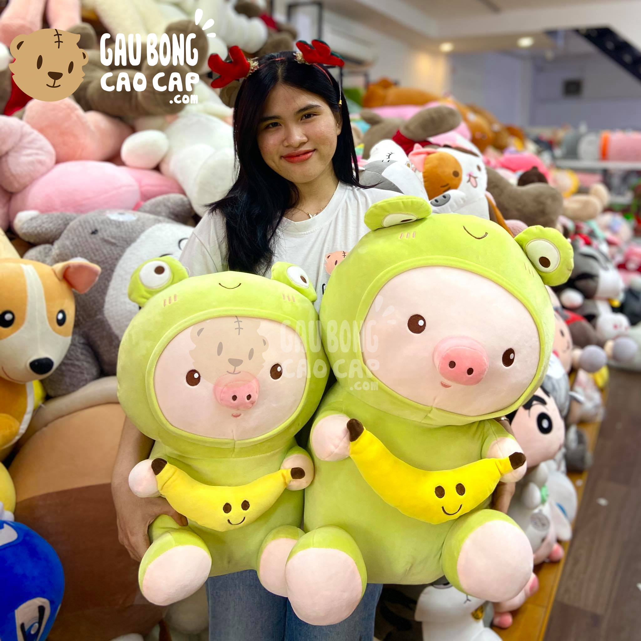 Heo Bông cosplay thú bông ôm trái cây được thiết kế với 2 kích thước Gấu Bông lớn nhỏ khác nhau: 55cm, 65cm