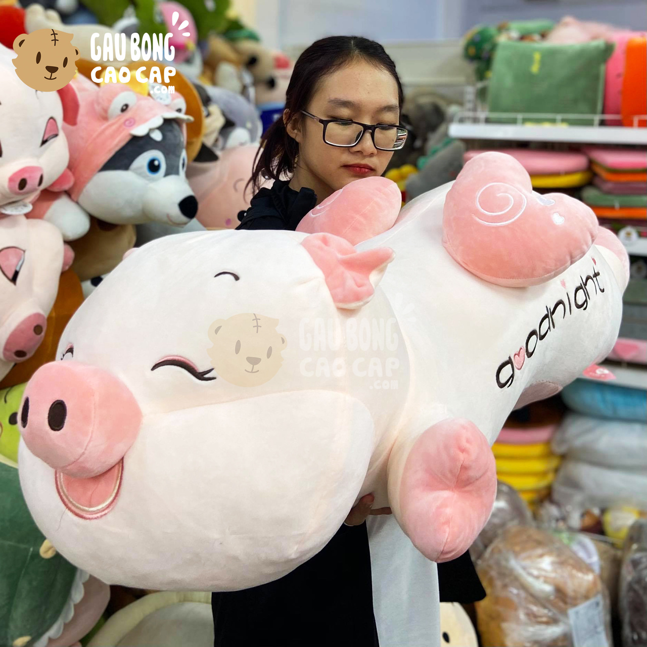 Heo Bông Good Night mặt cười có cánh Tim được thiết kế với 3 kích thước Gấu Bông lớn nhỏ khác nhau: 70cm, 90cm, 1m1