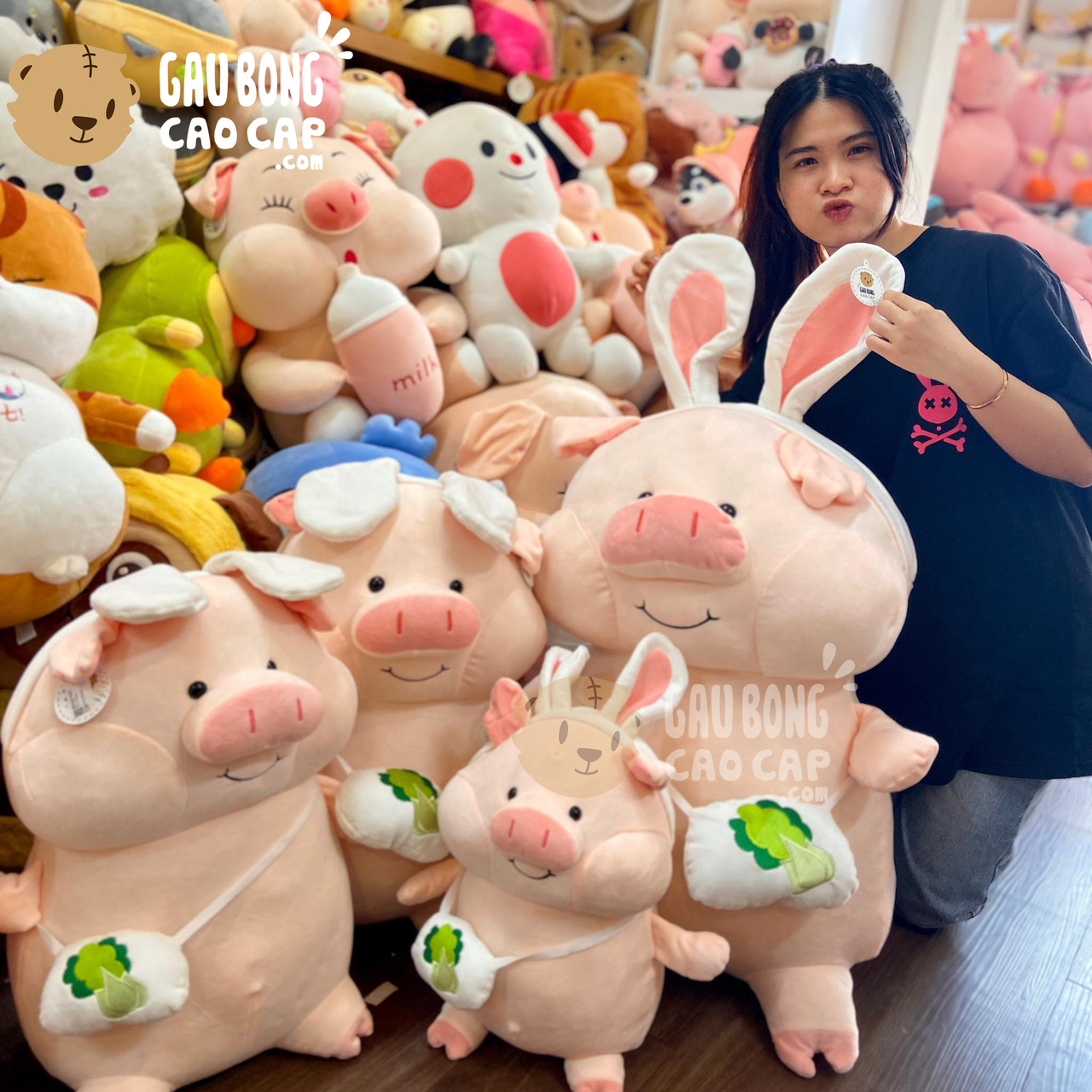 Heo Bông hồng mang túi đeo Băng Đô đang nằm trong danh sách những sản phẩm Gấu Bông Heo Bông BÁN CHẠY và đang được các bạn trẻ YÊU THÍCH NHẤT.