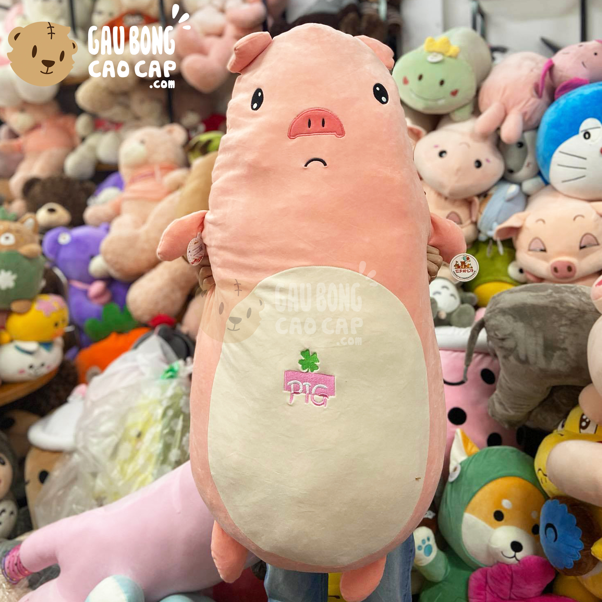 Heo Bông lông mịn bụng PIC thêu gối ôm dài đang nằm trong danh sách những sản phẩm Gấu Bông Khuyến Mãi BÁN CHẠY và đang được các bạn trẻ YÊU THÍCH NHẤT.