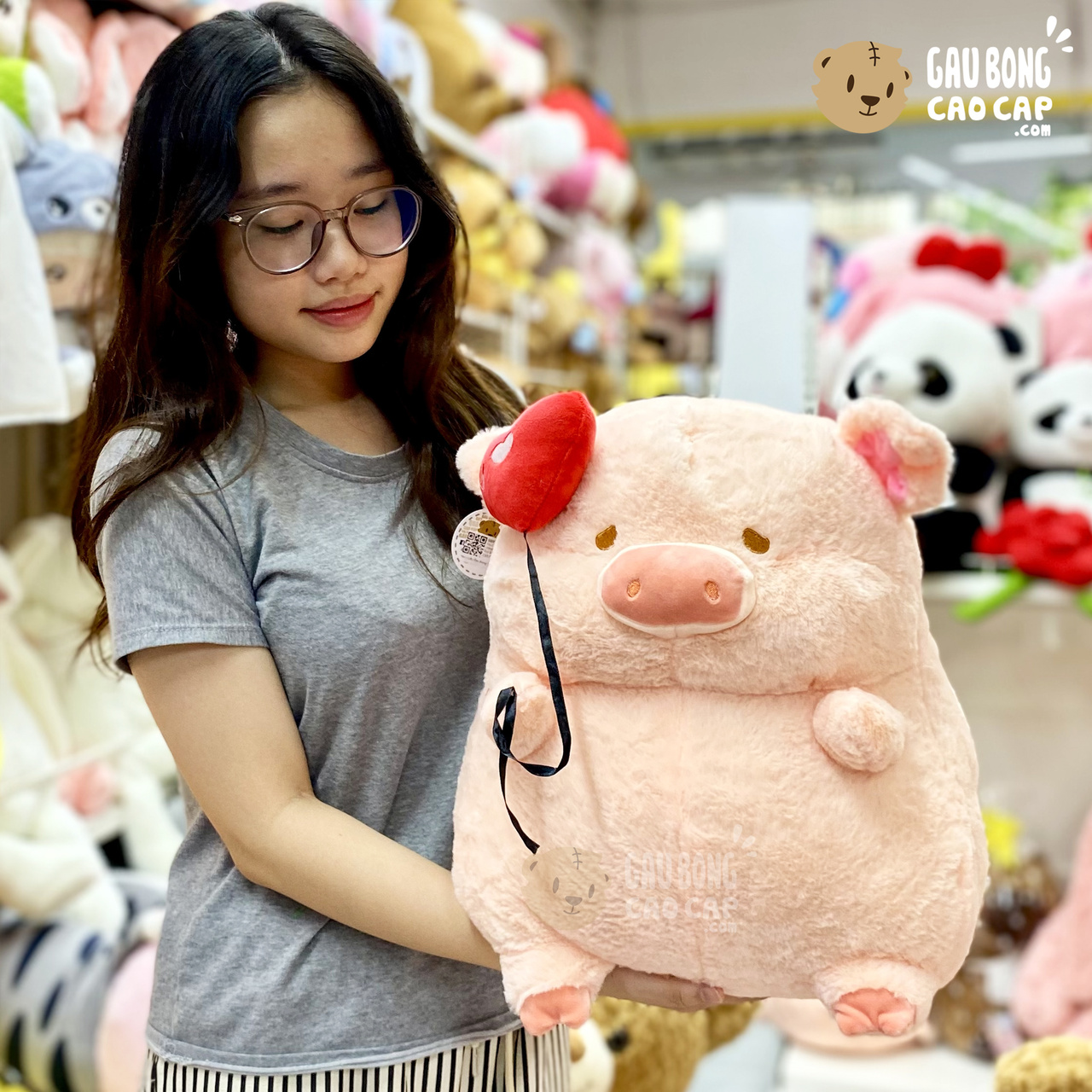 Heo Bông Lulu cầm bong bóng trái tim đang nằm trong danh sách những sản phẩm Gấu Bông Heo Bông BÁN CHẠY và đang được các bạn trẻ YÊU THÍCH NHẤT.