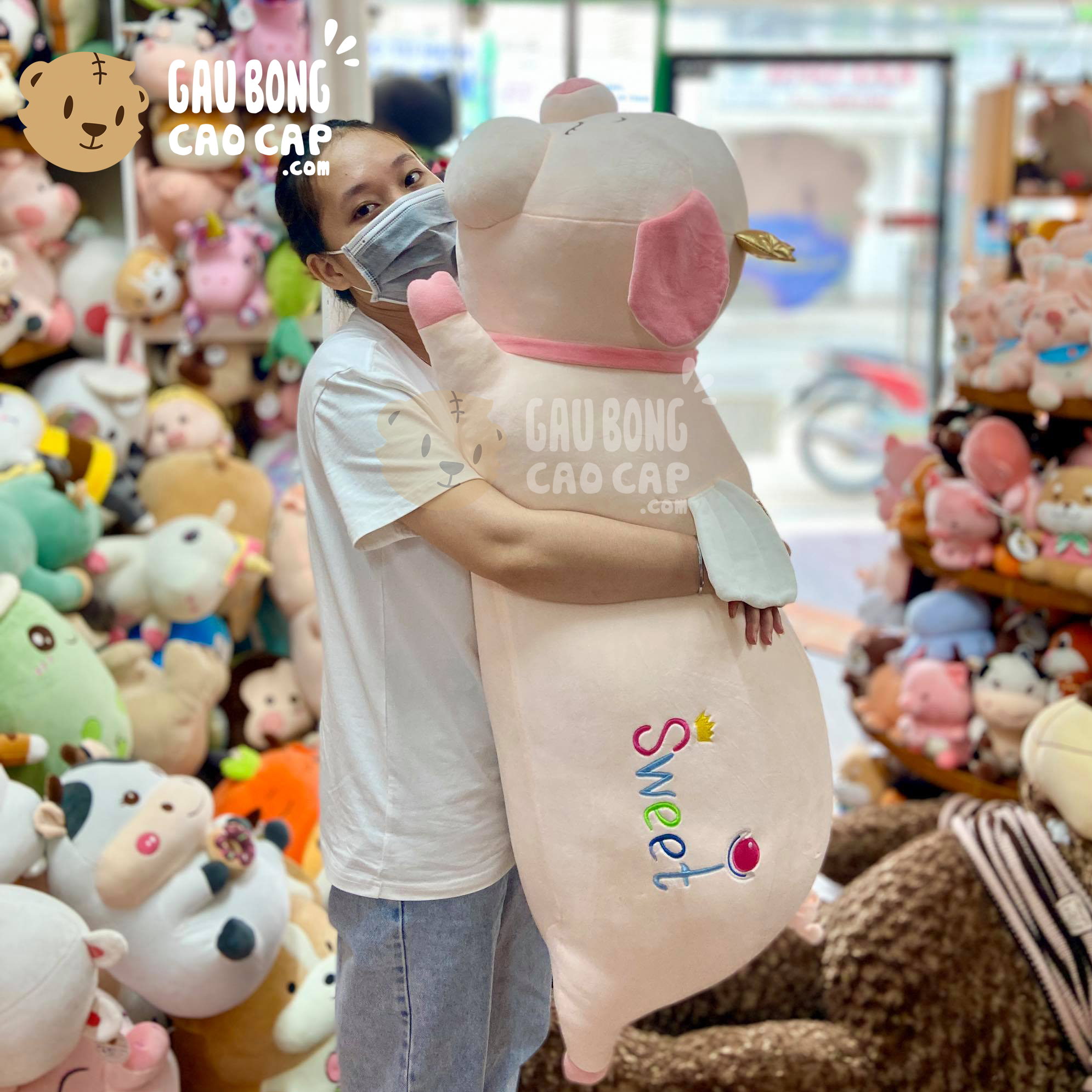 Heo Bông nằm má phính thêu Sweet - Shop Heo Bông - gaubongcaocap.com