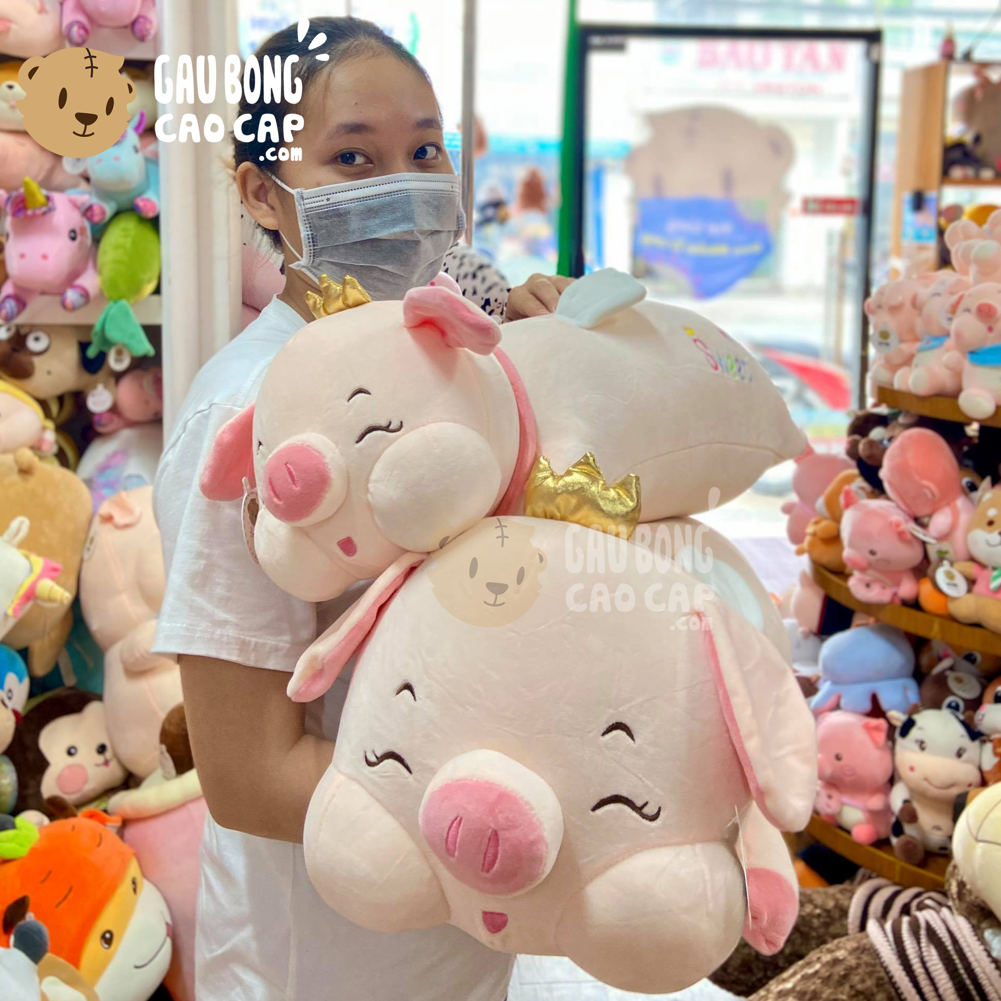 Heo Bông lông mịn nằm đeo Băng Đô Thỏ