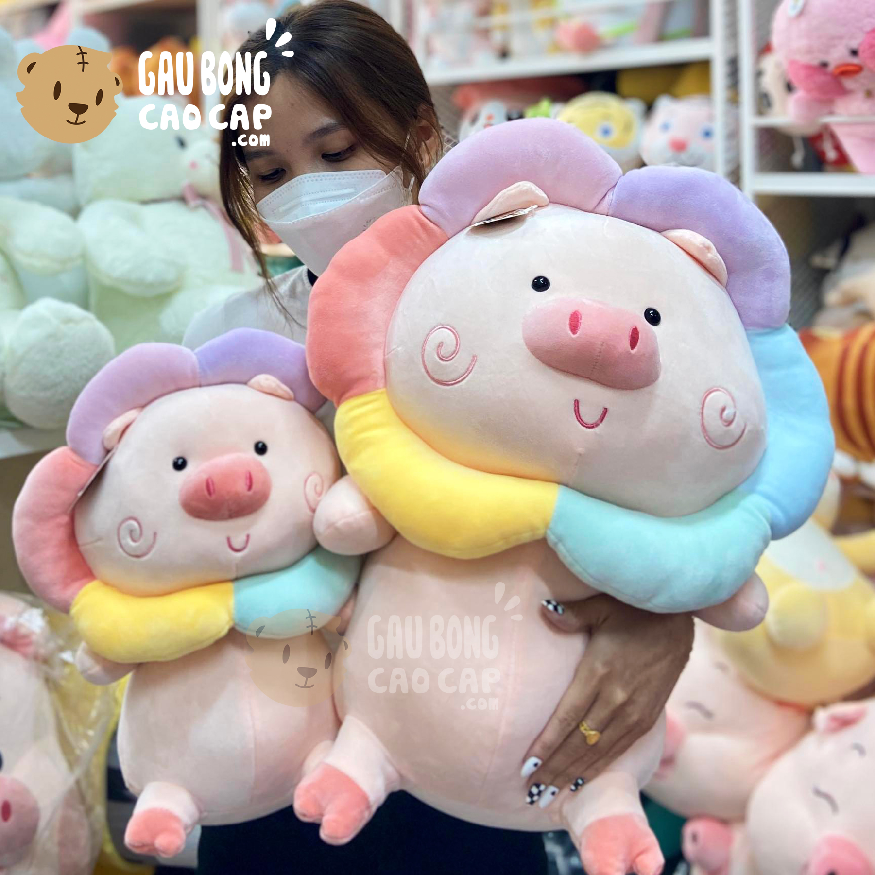 Heo Bông Ngồi Đội Hoa Colorful