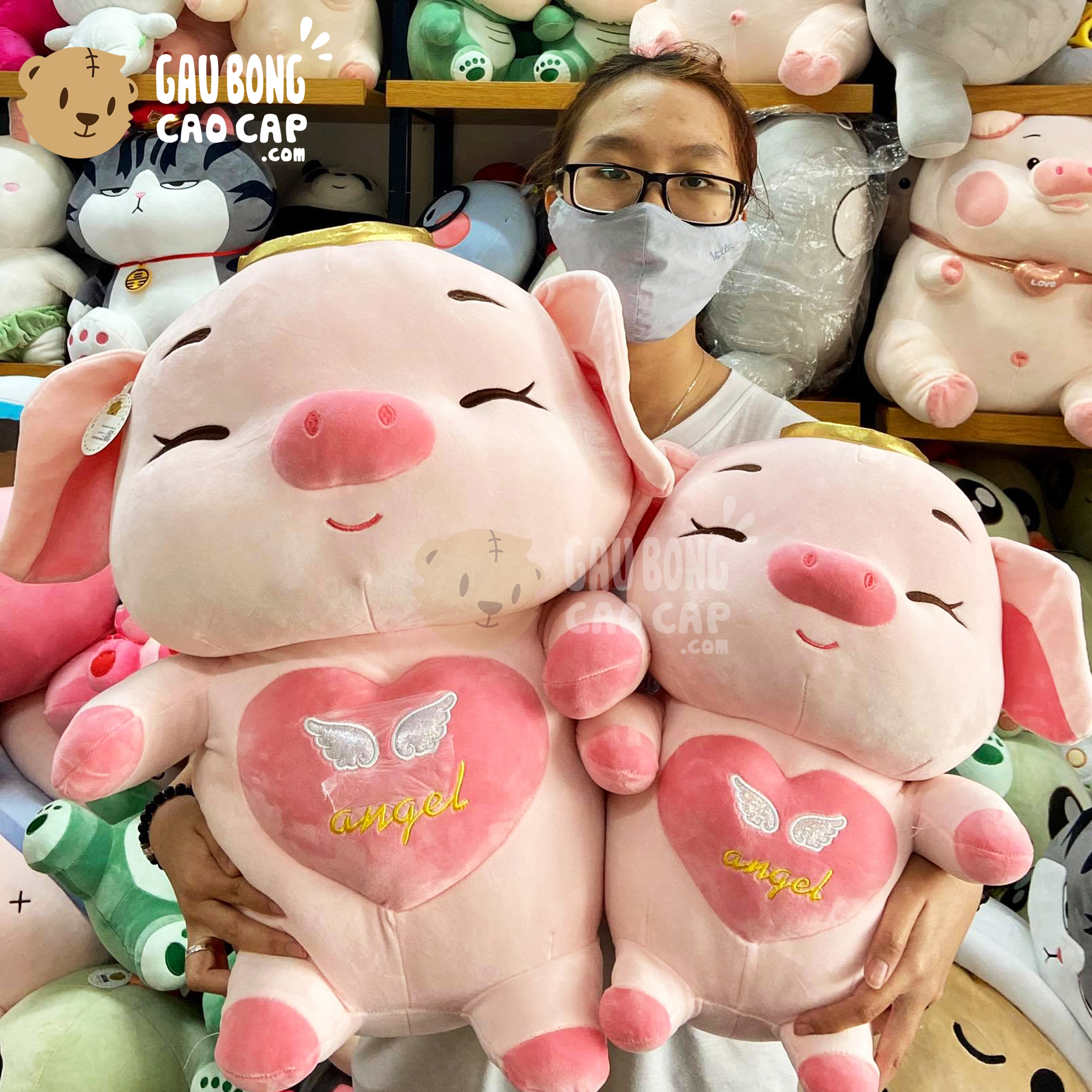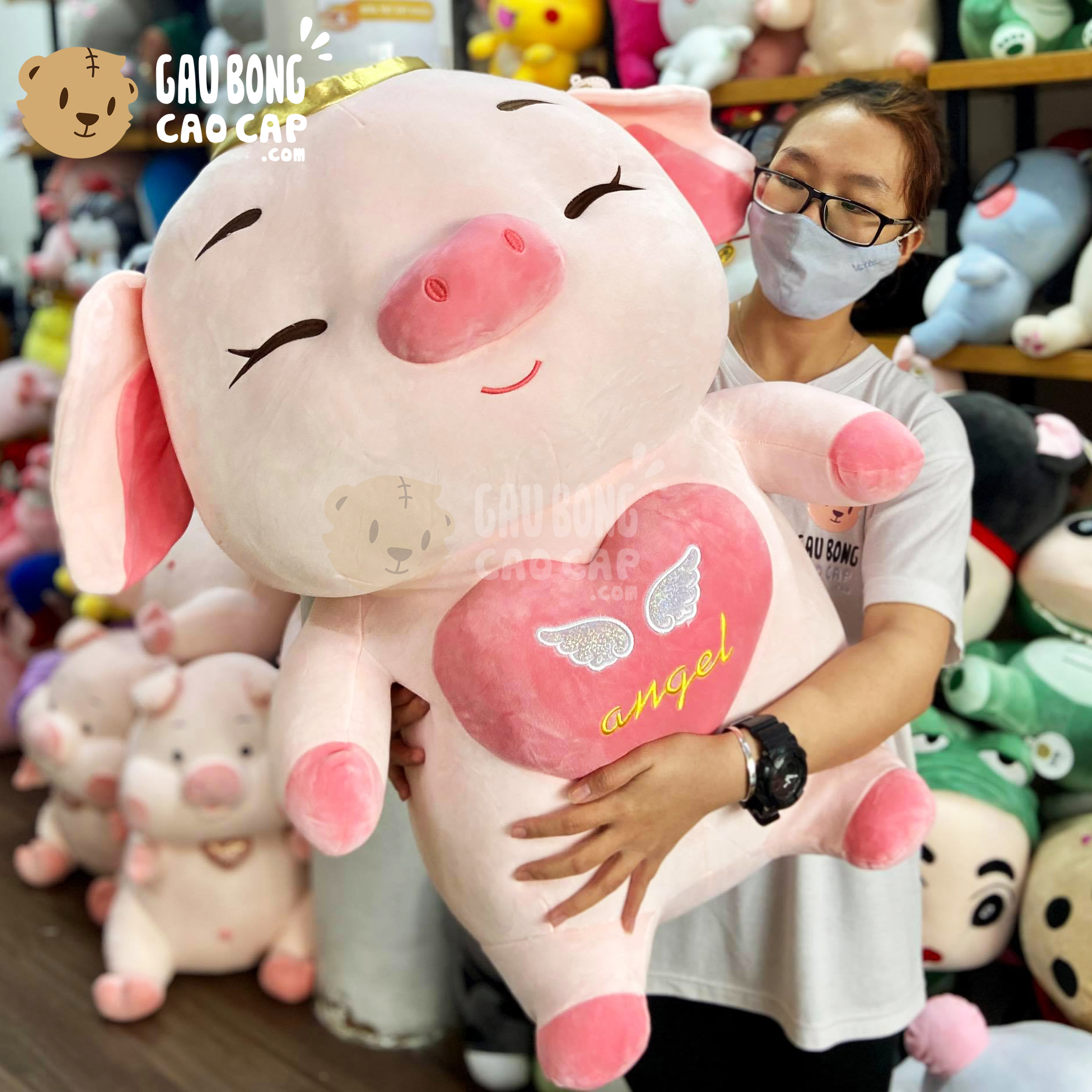 Heo Bông ngồi tim Angel Mắt Híp - Shop Heo Bông - gaubongcaocap.com