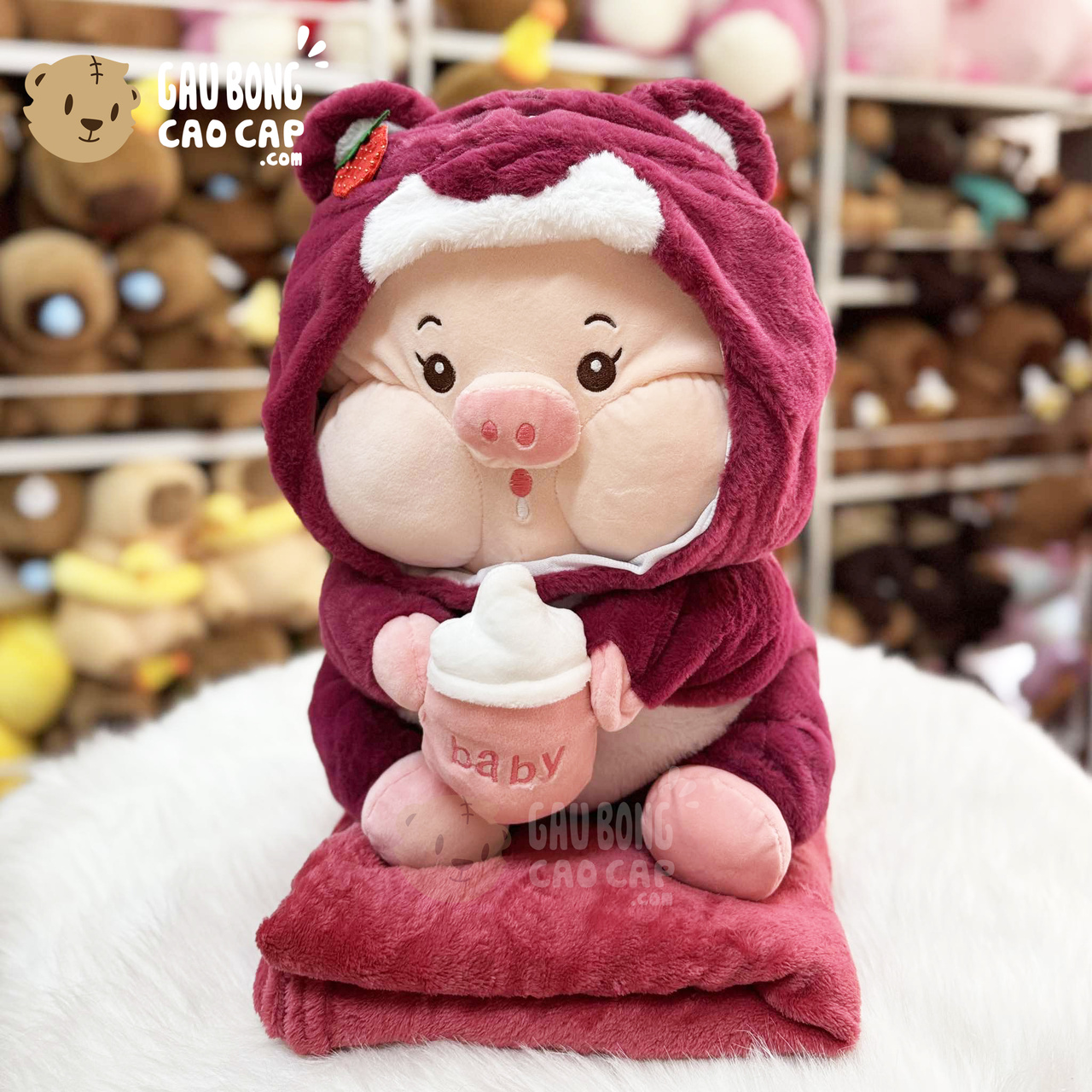 Heo Bông ôm Bình Sữa có mền 2in1