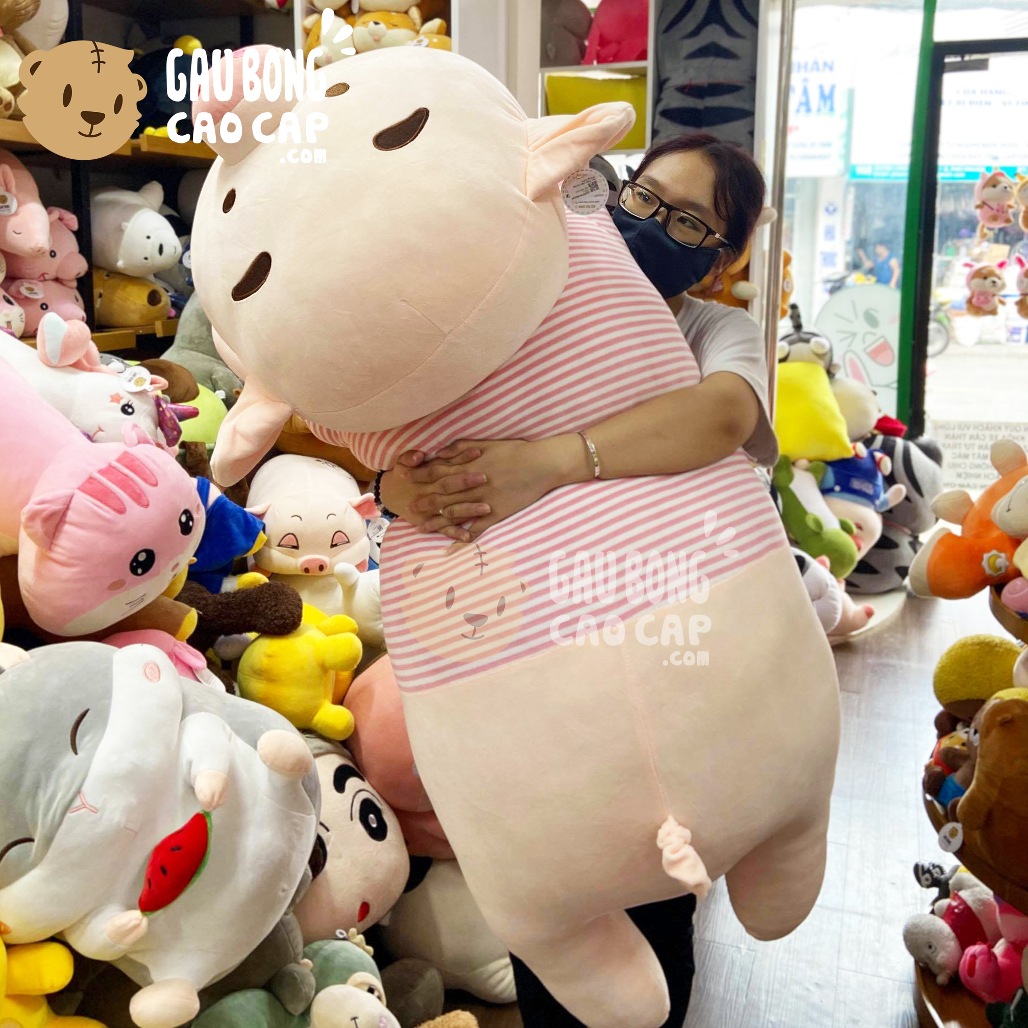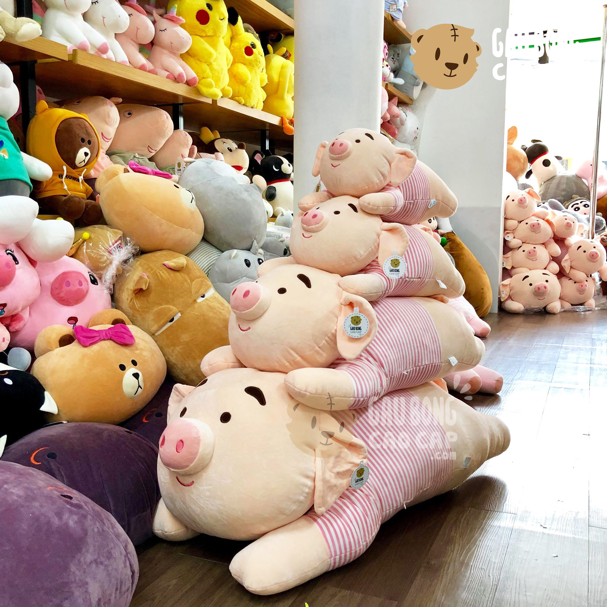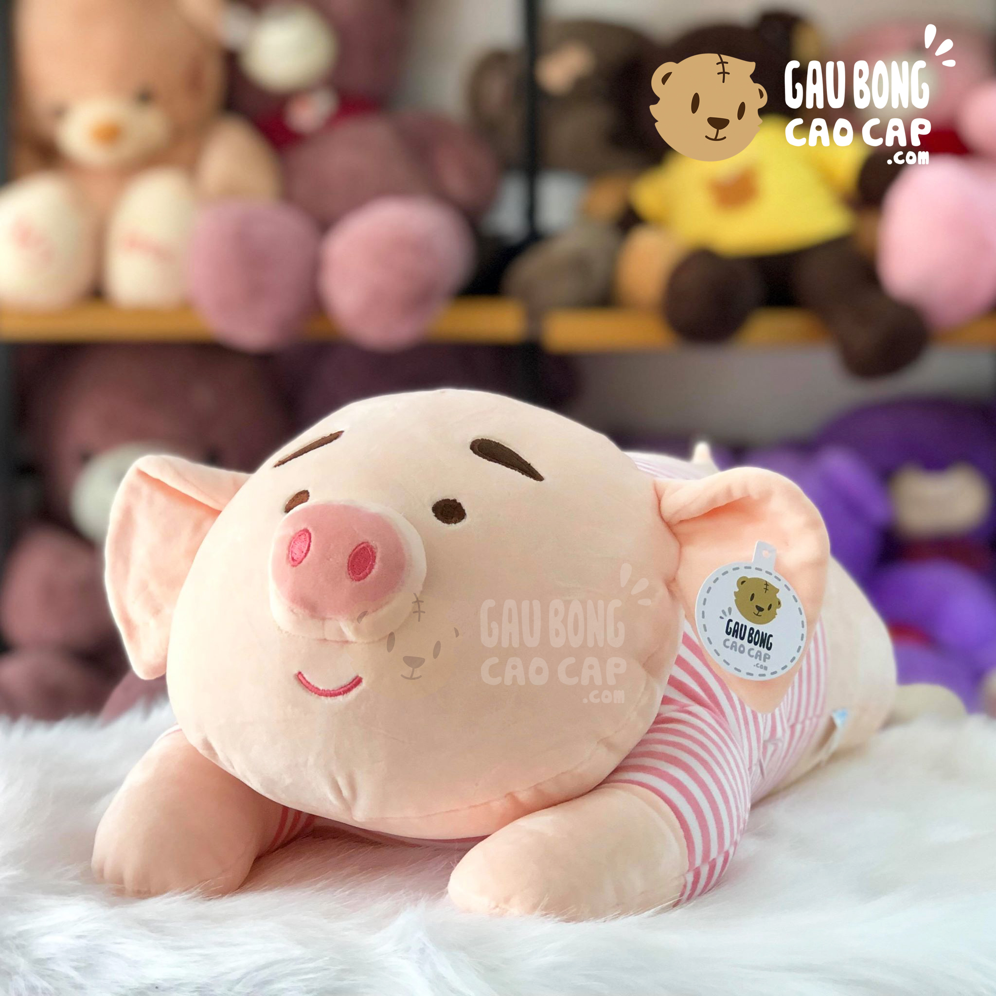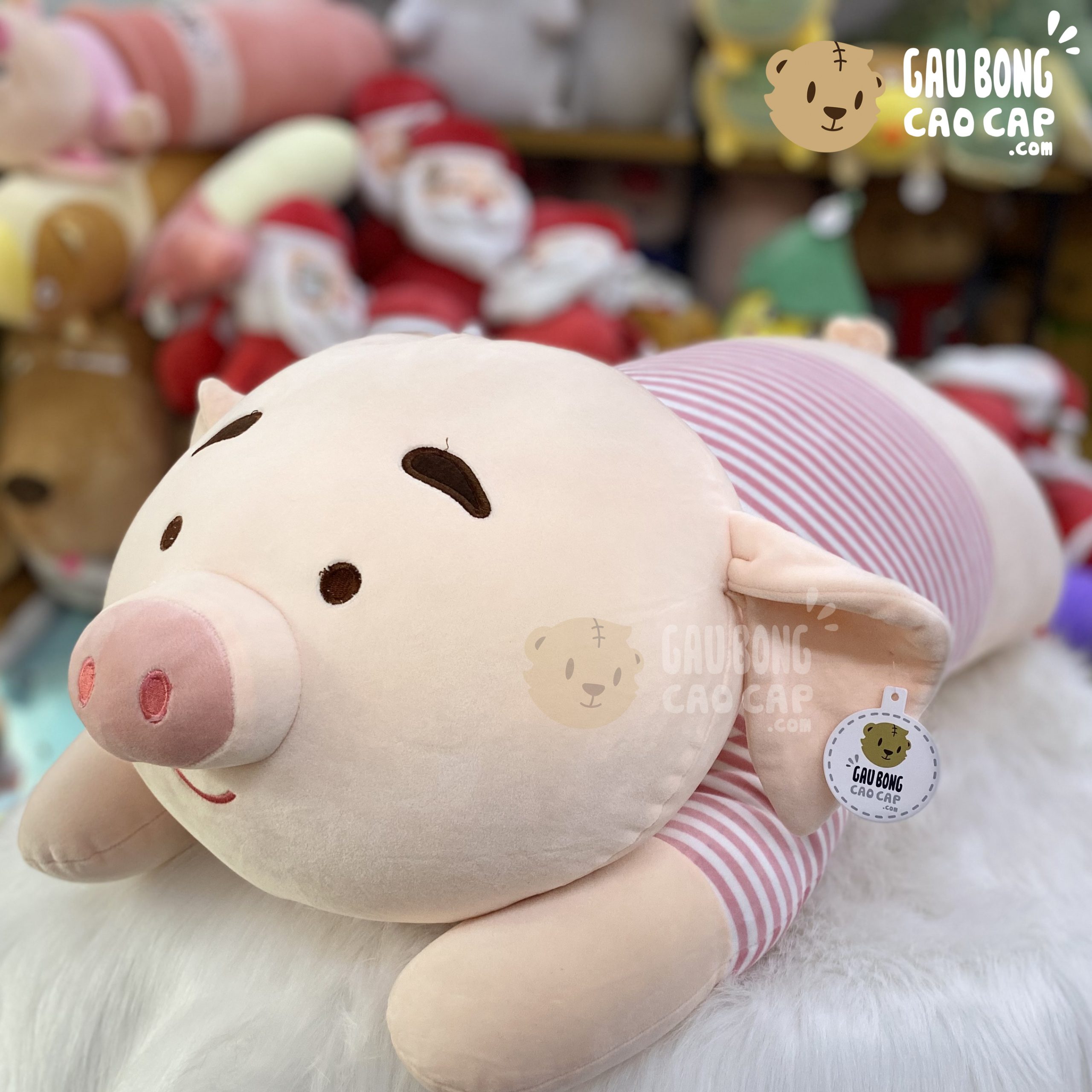 Trang Chủ / Gấu Bông Cao Cấp / Thú Bông / Heo Bông / Heo Bông Tiktok / Heo bông Tiktok gối ôm dài mặc áo Sọc