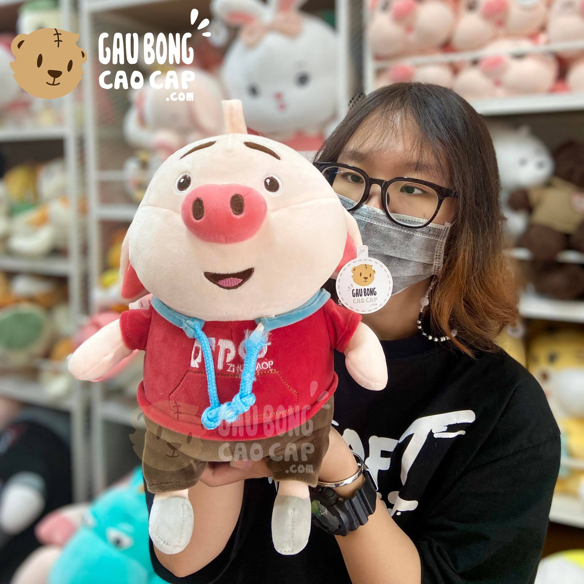 Hình ảnh Heo Bông Tiktok mặc áo Hoodie, hình ảnh này là hình THẬT do Shop TỰ CHỤP.