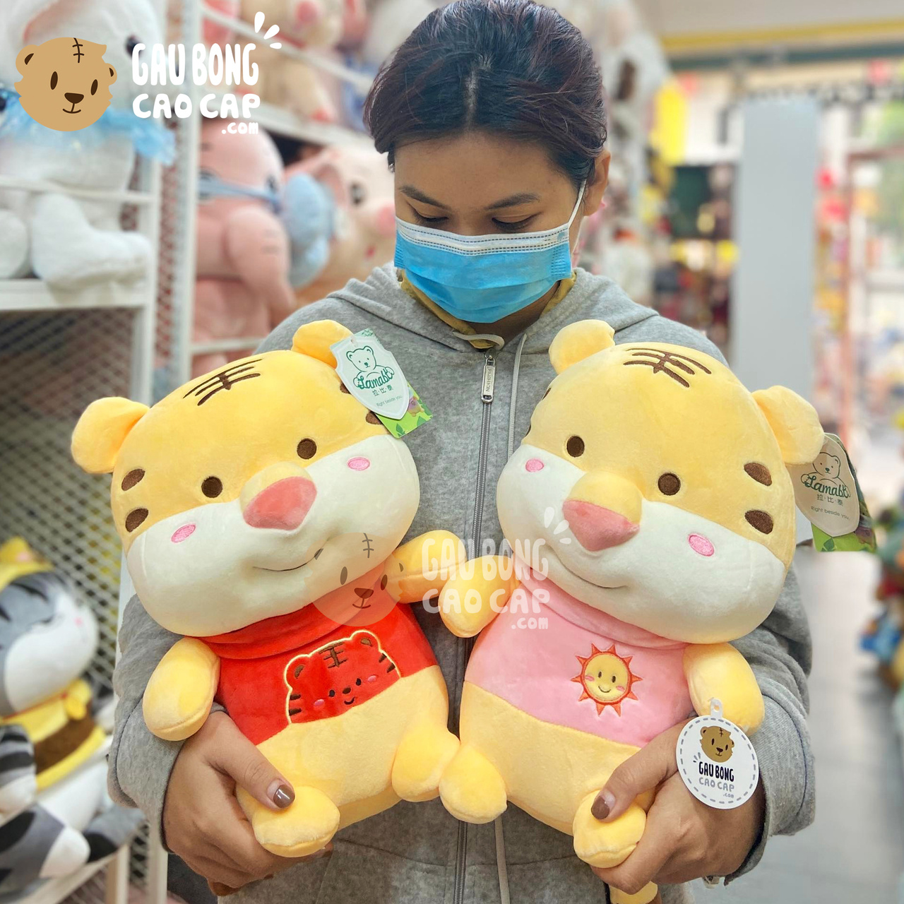 Hổ Bông ngồi mặc áo thun thêu mặt Hổ được thiết kế với 1 kích thước Gấu Bông lớn nhỏ khác nhau: 30cm