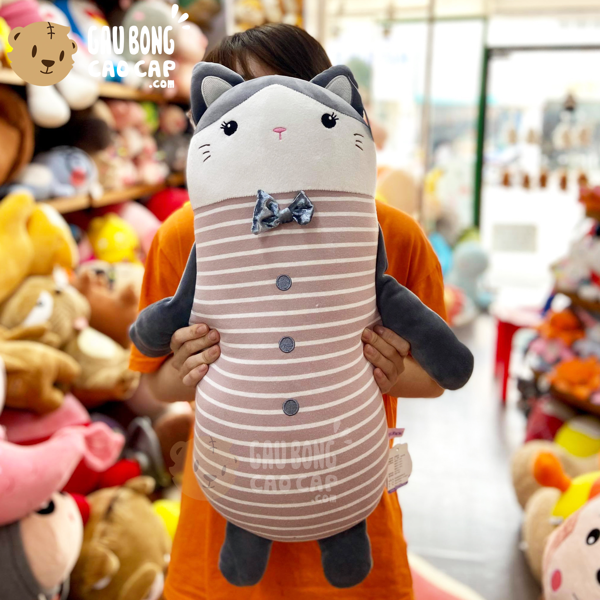 Mèo bông mặc áo sọc đeo nơ gối ôm dài đang nằm trong danh sách những sản phẩm Gấu Bông Khuyến Mãi BÁN CHẠY và đang được các bạn trẻ YÊU THÍCH NHẤT.