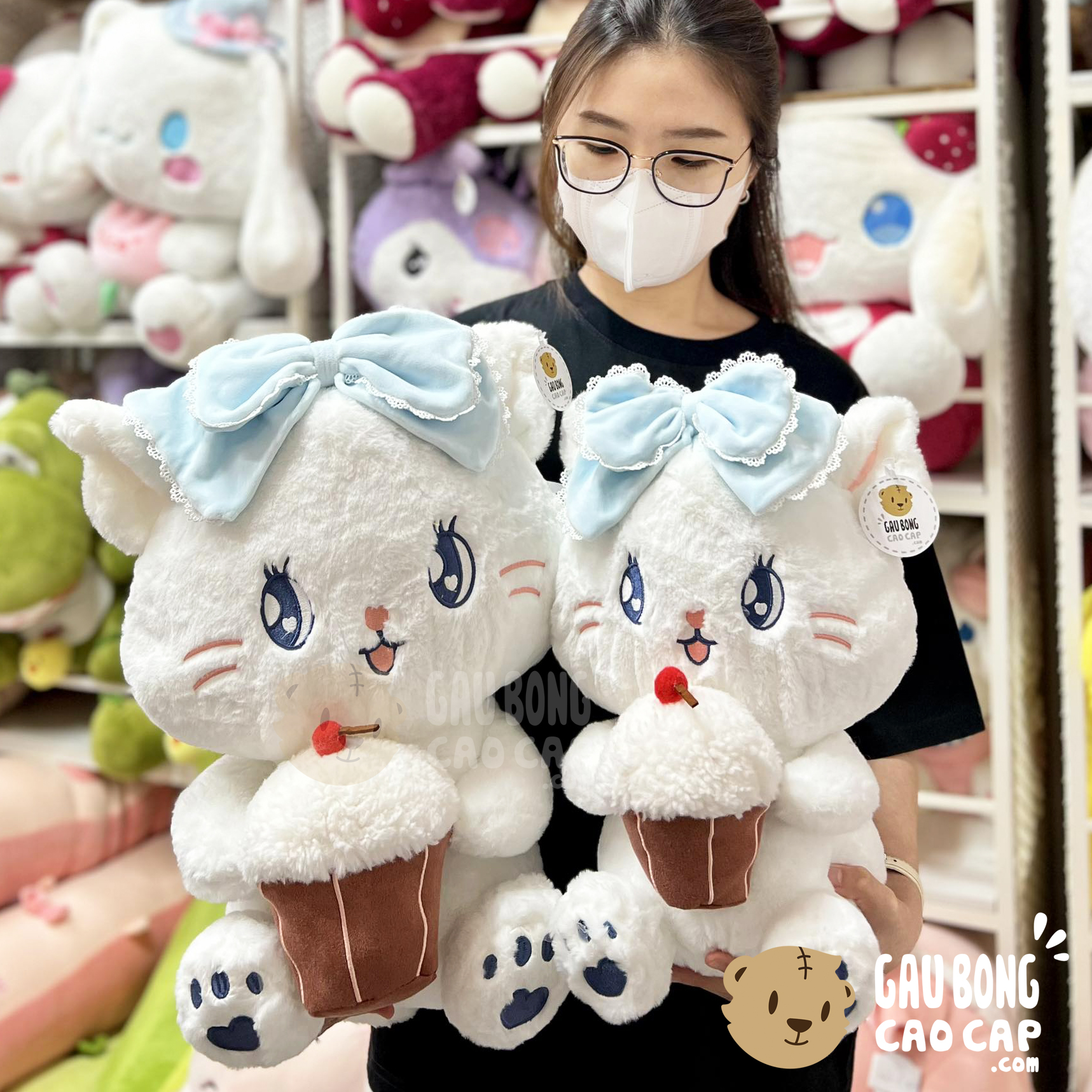 Mèo Bông Ngồi Ôm Bánh Kem Sinh Nhật được thiết kế với 2 kích thước Gấu Bông lớn nhỏ khác nhau: 42cm, 50cm