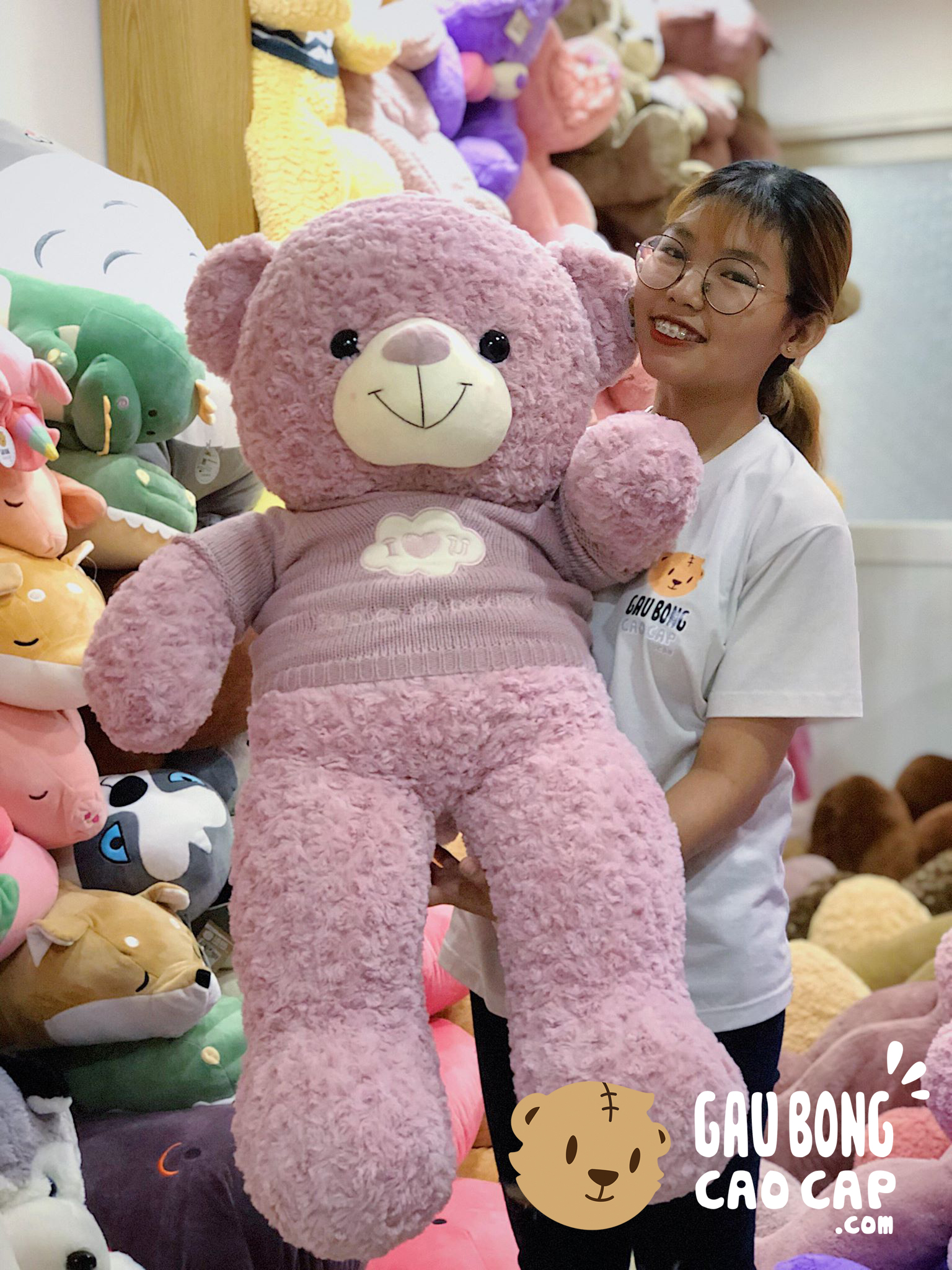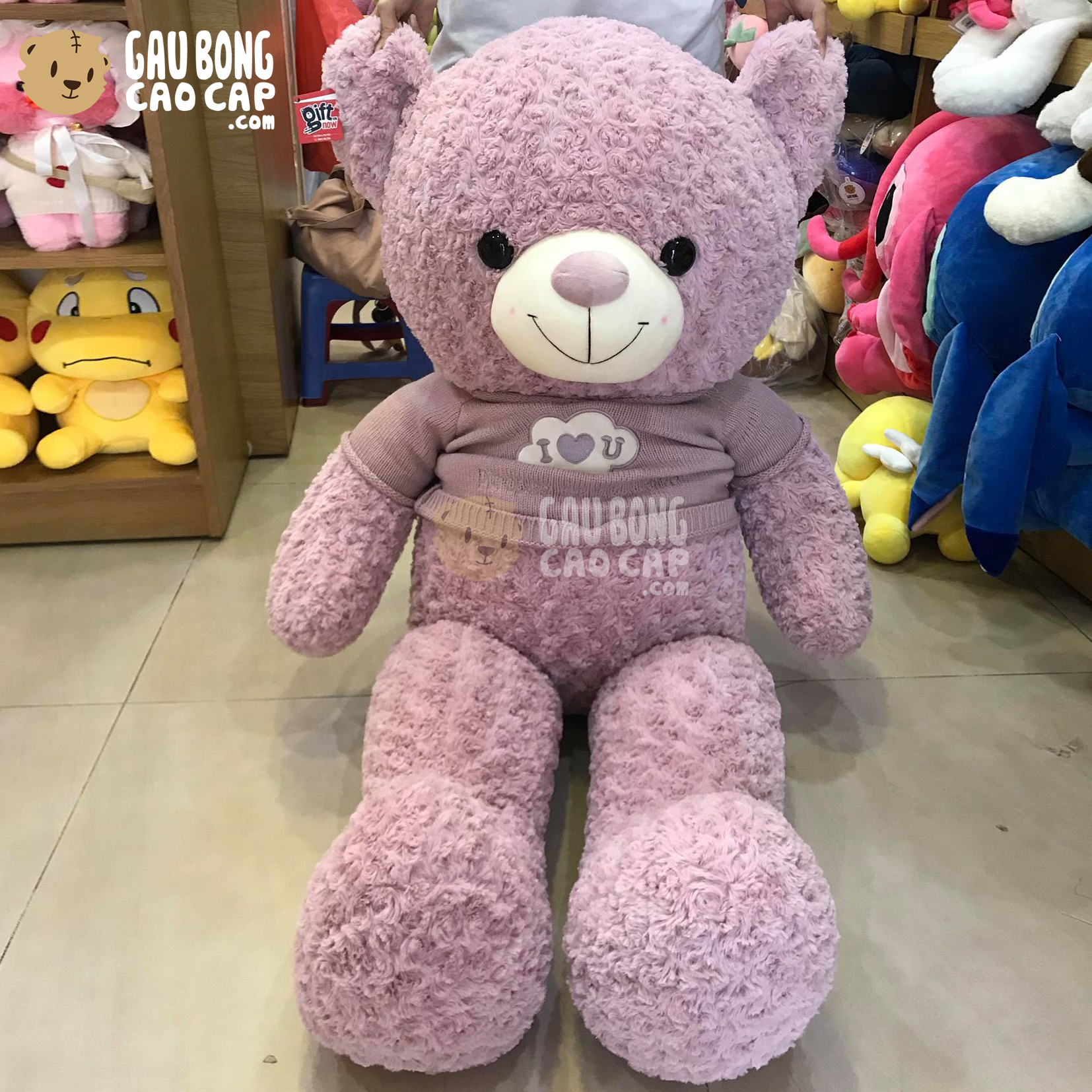 Teddy áo len lông xoắn I LOVE YOU - Màu Tím được thiết kế với 3 kích thước Gấu Bông lớn nhỏ khác nhau: 1m, 1m1, 1m3