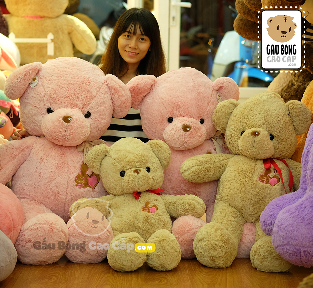 Teddy ngực tim đính hạt được thiết kế với 4 kích thước Gấu Bông lớn nhỏ khác nhau: 70cm, 80cm, 90cm, 1m1