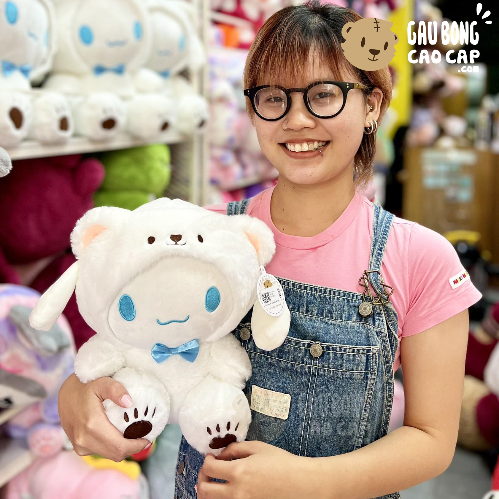 Thỏ Bông Cinnamoroll màu Trắng ngồi đội Mũ Rời được thiết kế với 2 kích thước Gấu Bông lớn nhỏ khác nhau: 35cm, 50cm