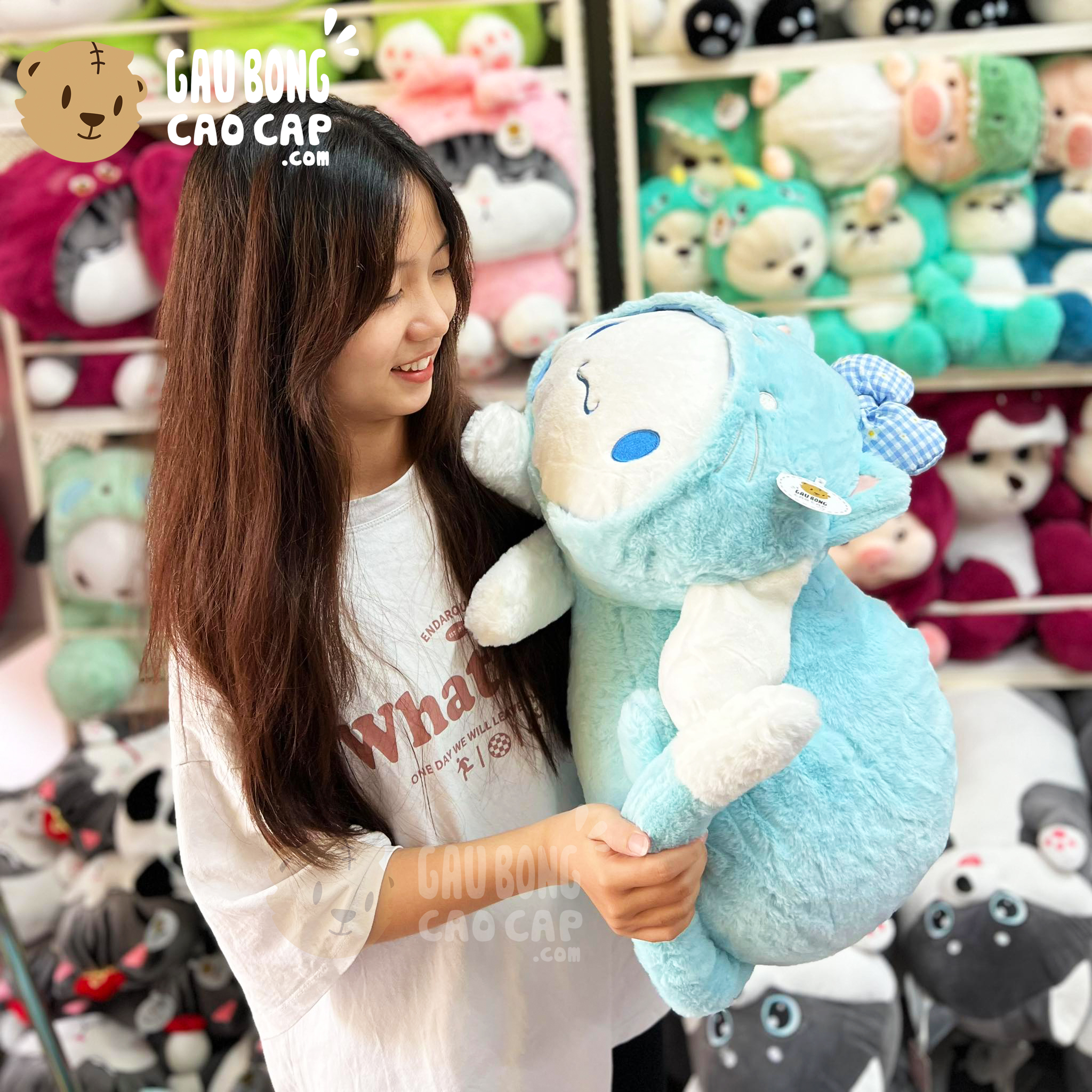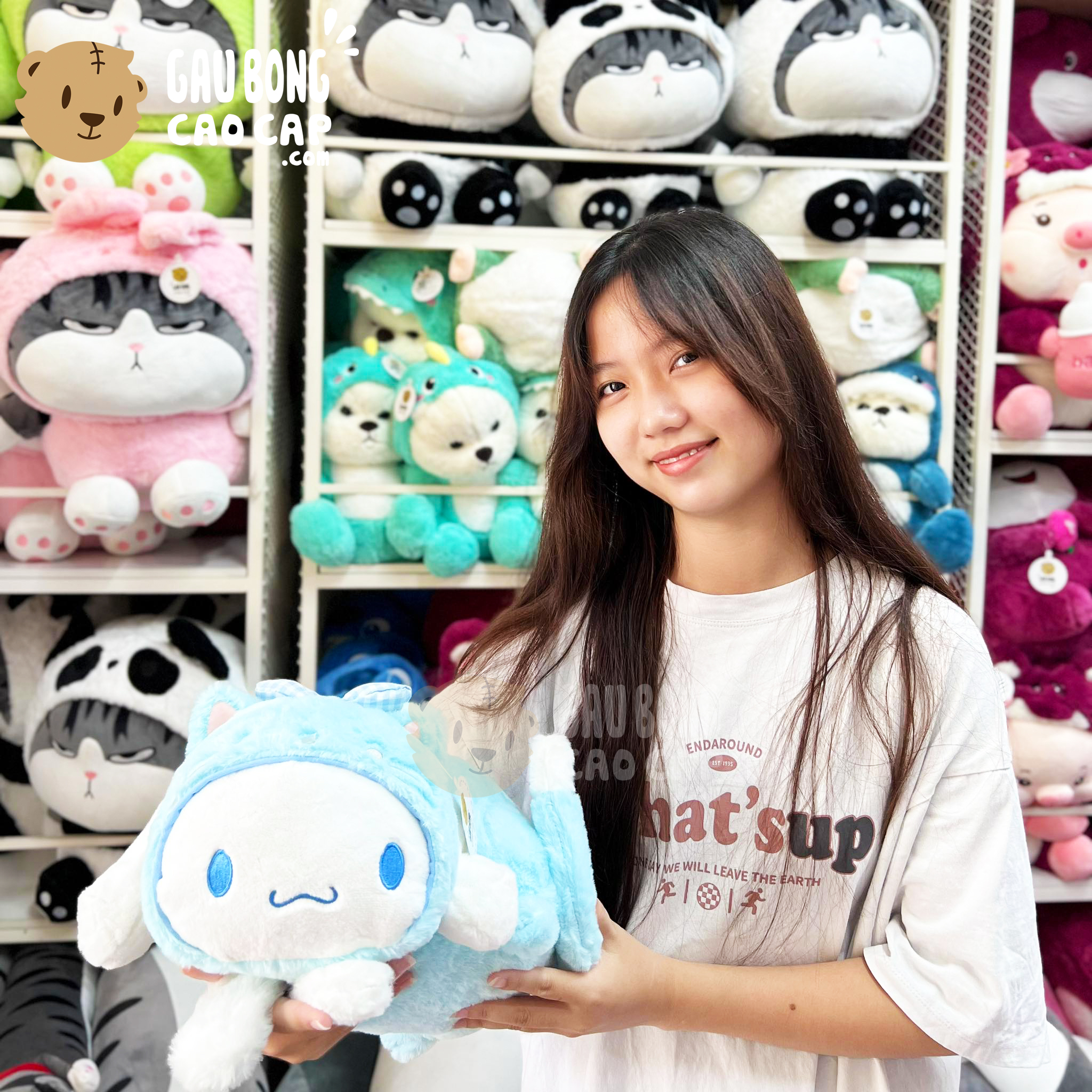 Thỏ Bông Cinnamoroll nằm cosplay Mèo được thiết kế với 3 kích thước Gấu Bông lớn nhỏ khác nhau: 30cm, 55cm, 70cm