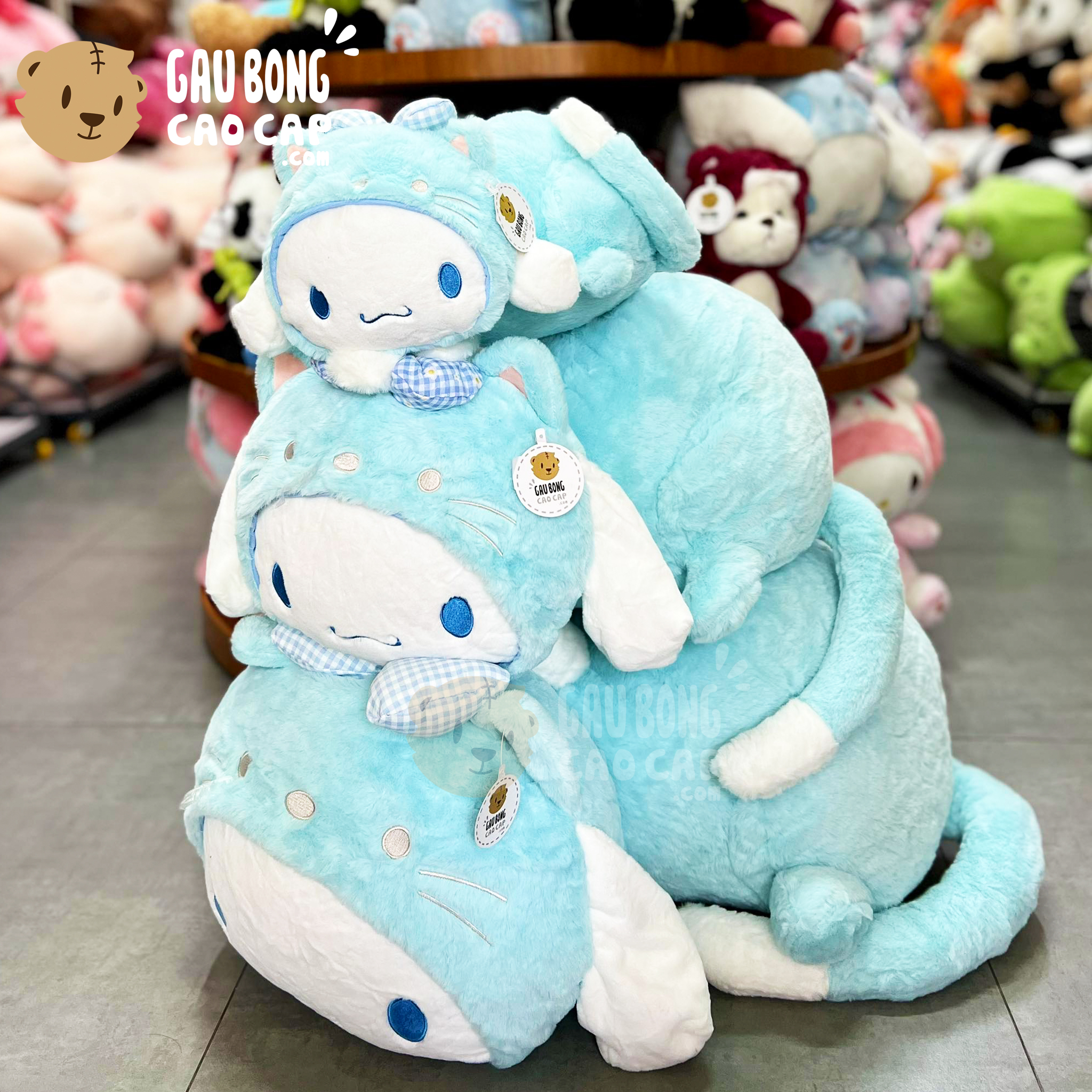 Thỏ Bông Cinnamoroll nằm cosplay Mèo - Shop Thỏ Bông Cinnamoroll - gaubongcaocap.com
