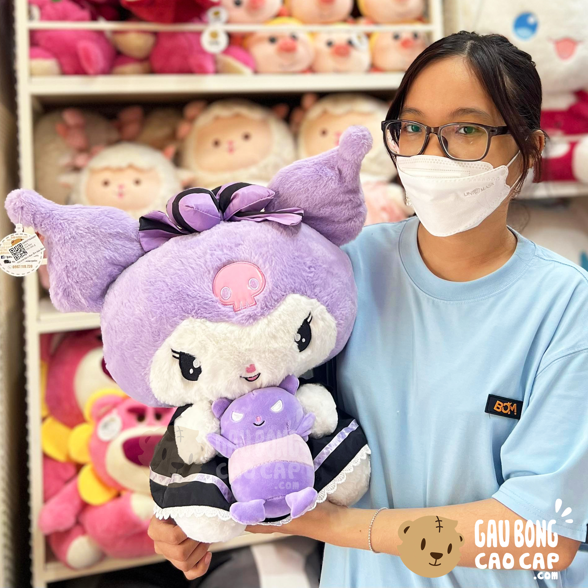 Thỏ Bông Kuromi mặc Đầm Đen Ôm Gấu Bông