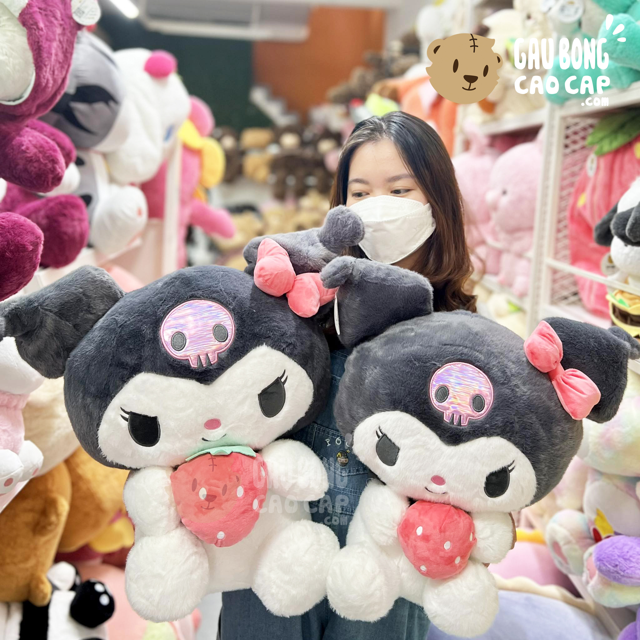 Trang Chủ / Gấu Bông Cao Cấp / Thú Bông / Thỏ Bông / Thỏ Bông Kuromi / Thỏ Bông Kuromi ngồi ôm Dâu