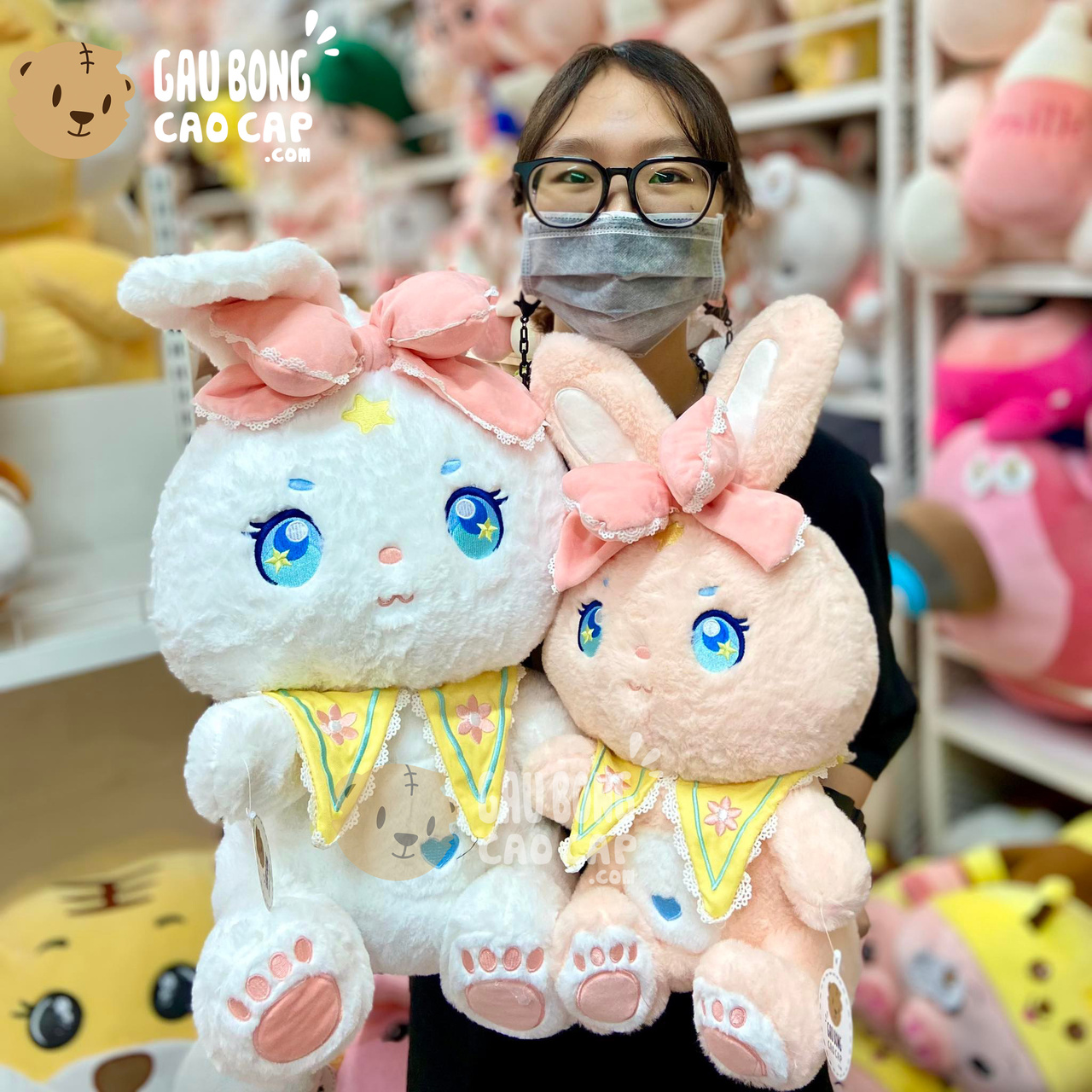 Trang Chủ / Gấu Bông Cao Cấp / Thú Bông / Thỏ Bông / Thỏ Bông lông tơ mịn đeo nơ mắt sao long lanh