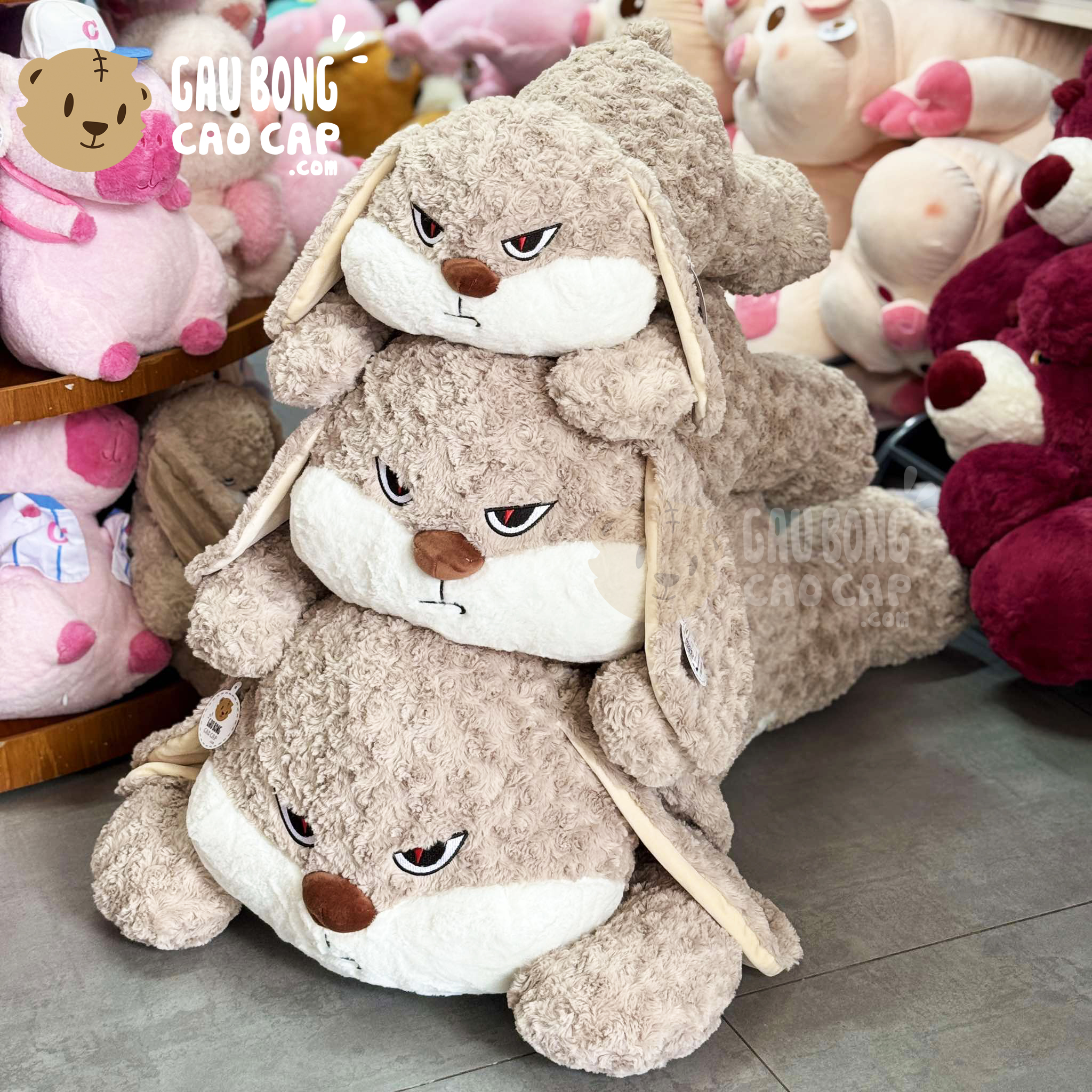 Thỏ Bông mặt Quạo form nằm - Lông xoắn Màu Nâu được thiết kế với 3 kích thước Gấu Bông lớn nhỏ khác nhau: 95cm, 75cm, 60cm