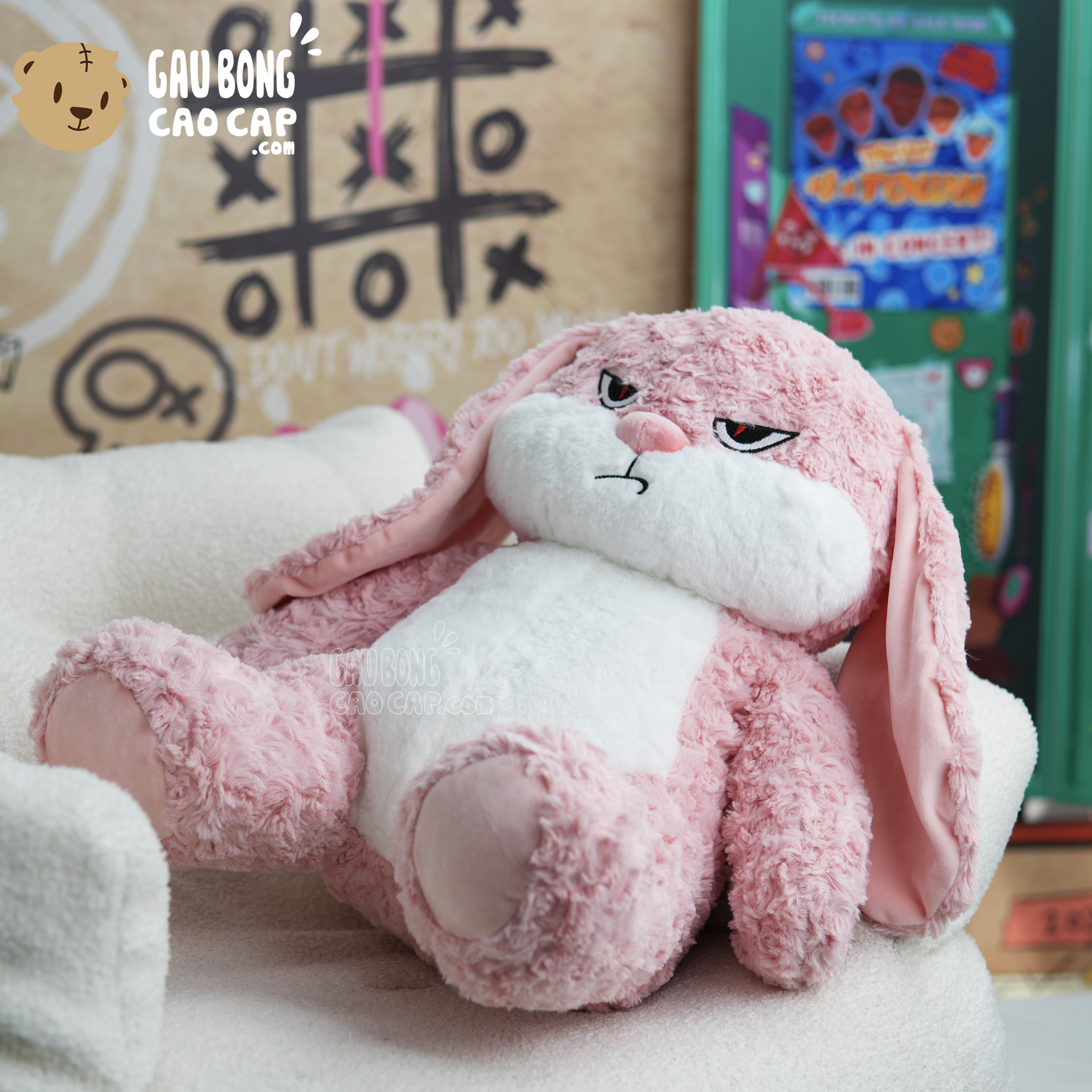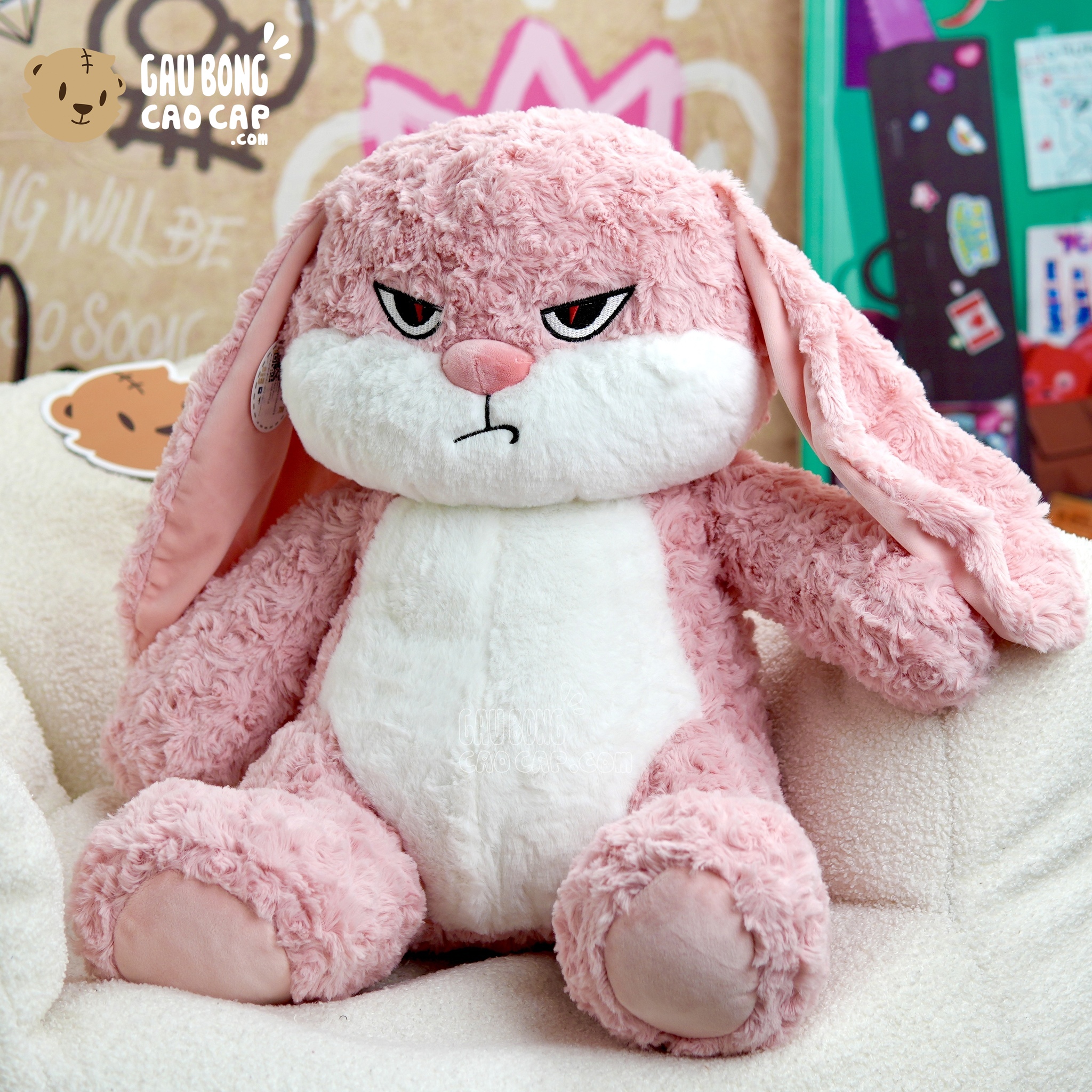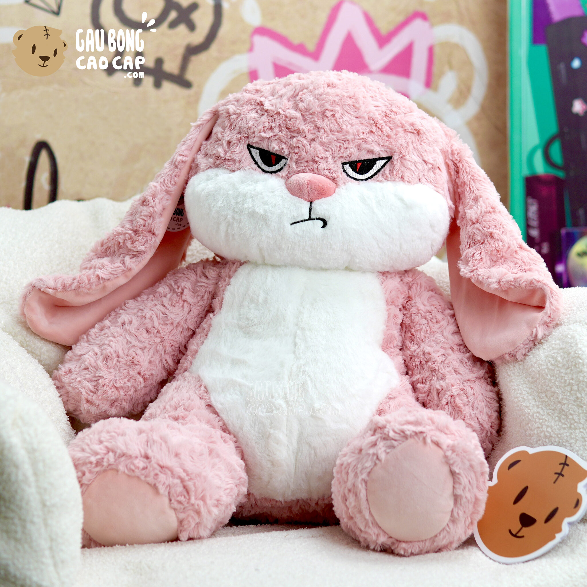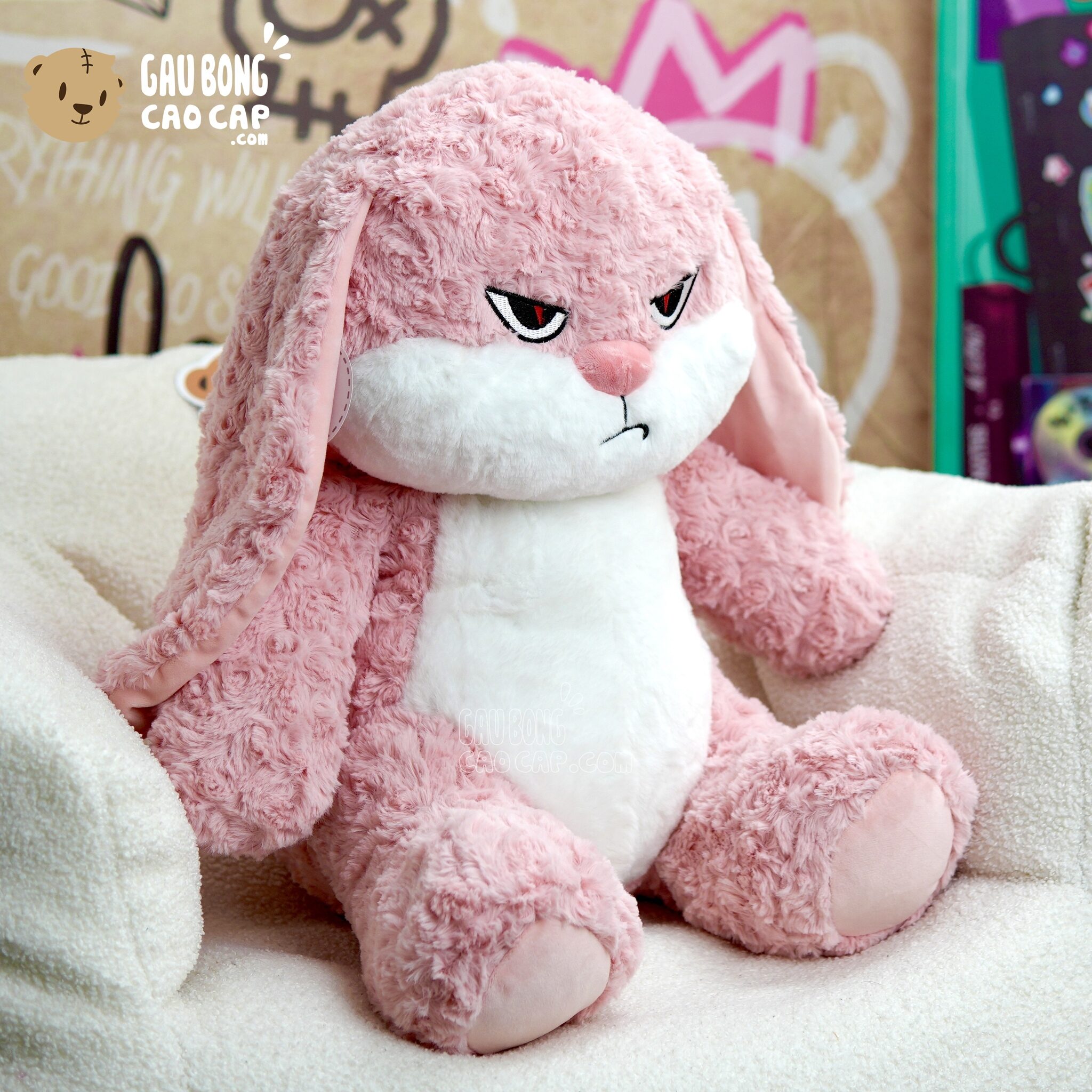 Trang Chủ / Gấu Bông Cao Cấp / Gấu Bông / Gấu Bông màu Hồng / Thỏ Bông mặt quạo màu Hồng