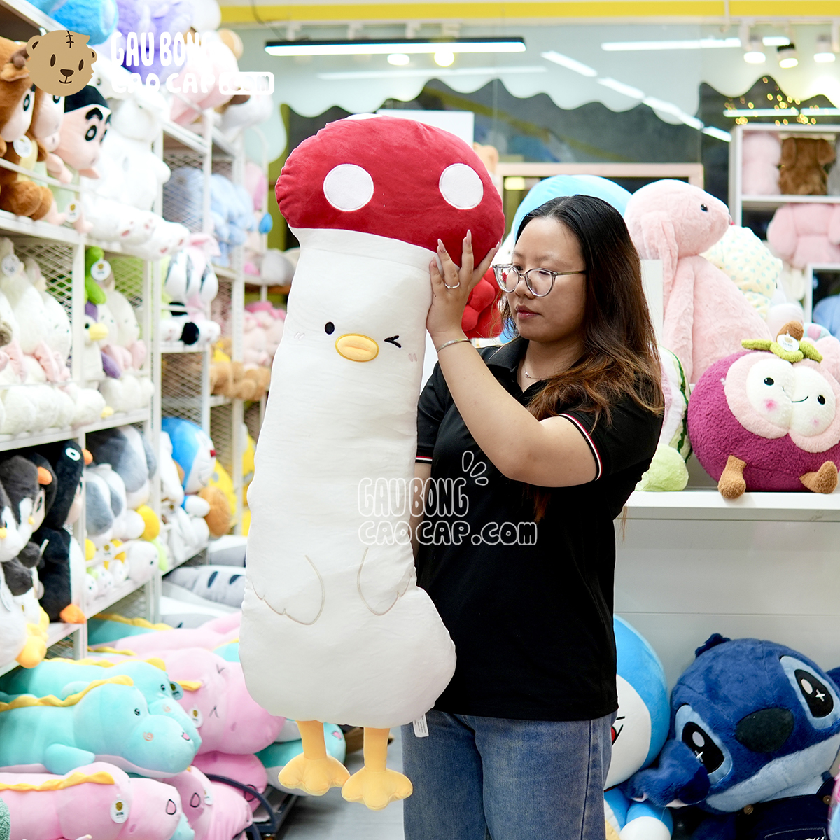 Vịt Bông cosplay Nấm Đỏ lông mịn được thiết kế với 3 kích thước Gấu Bông lớn nhỏ khác nhau: 60cm, 85cm, 1m15